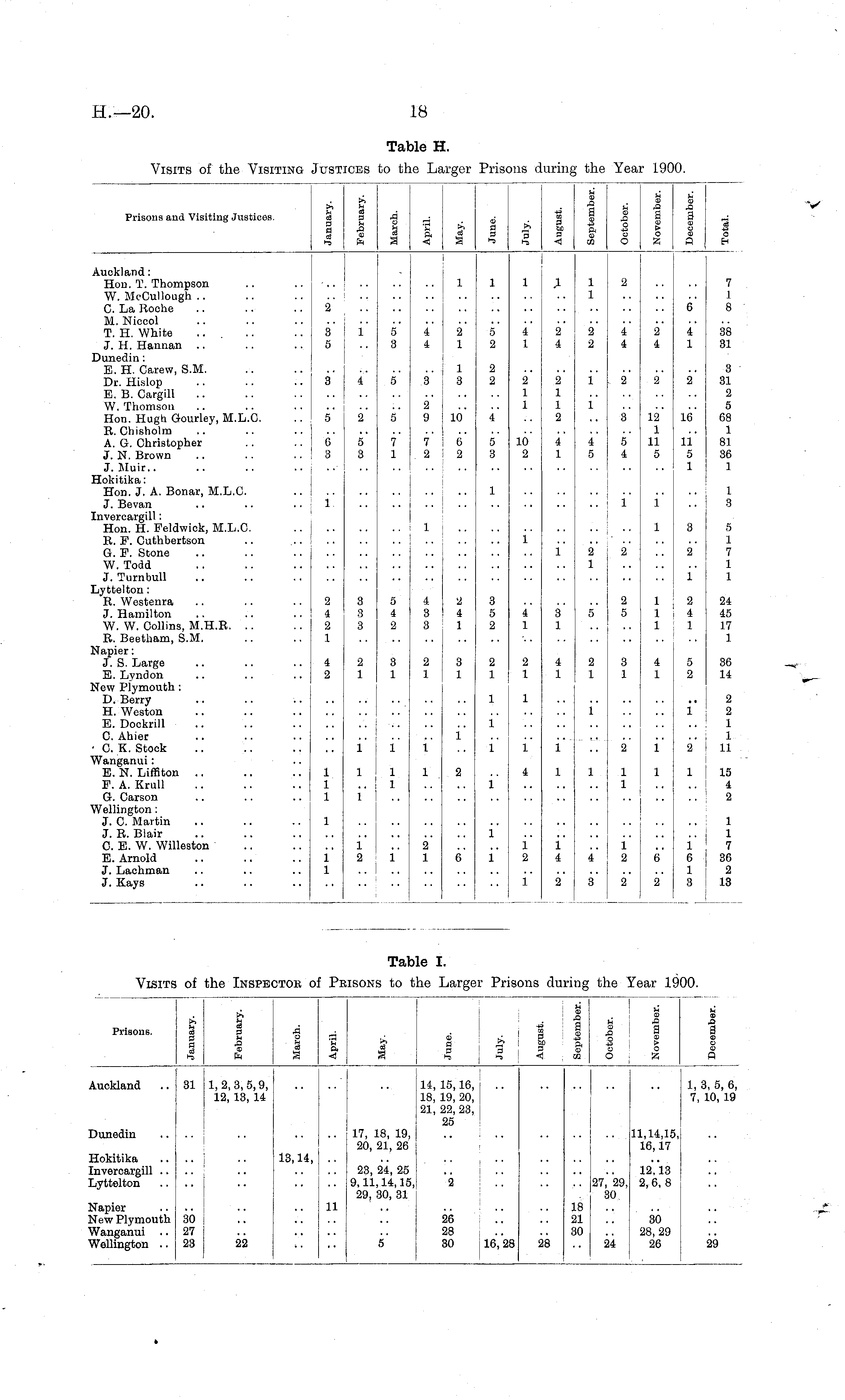 Table H. Visits of the Visiting Justices to the Larger Prisons during the Year 1900.