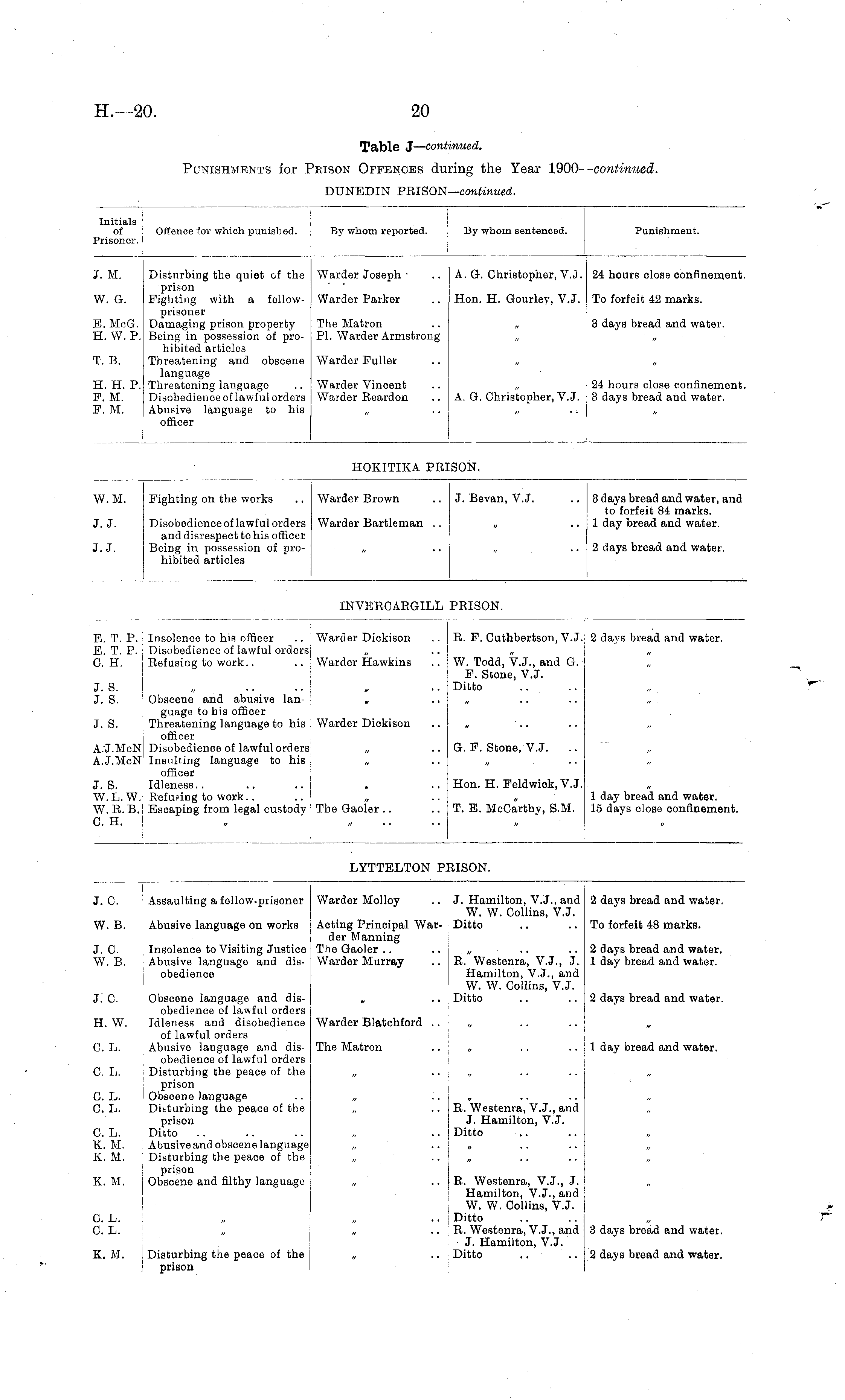 Table J — continued. Punishments for Prison Offences during the Year 1900- continued. DUNEDIN PRISON—continued.