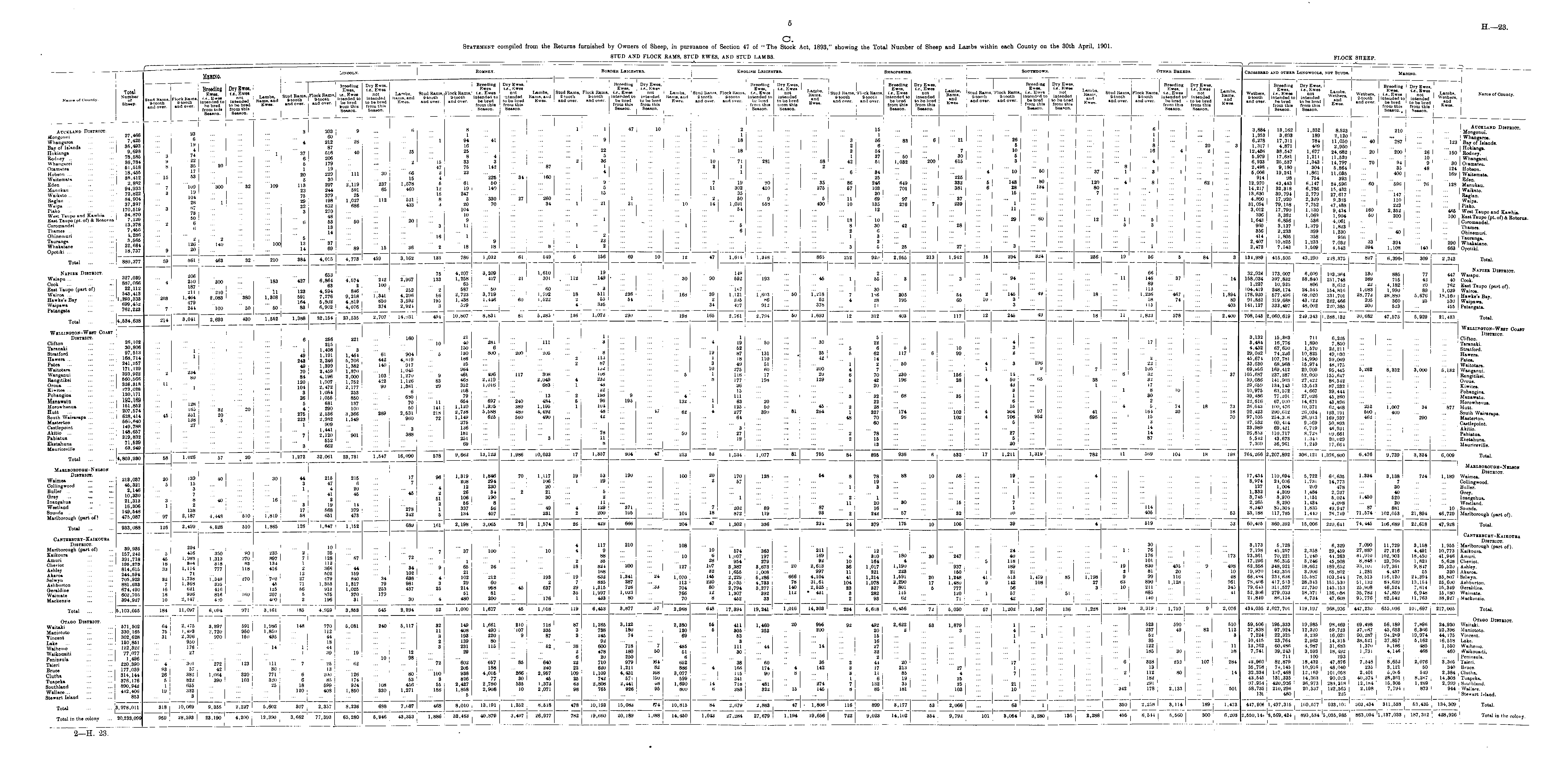C. Statement compiled from the Returns furnished by Owners of Sheep, in pursuance of Section 47 of "The Stock Act, 1893," showing the Total Number of Sheep and Lambs within each County on the 30th April, 1901. STUD AND FLOCK RAMS, STUD EWES, AND STUD LAMBS.