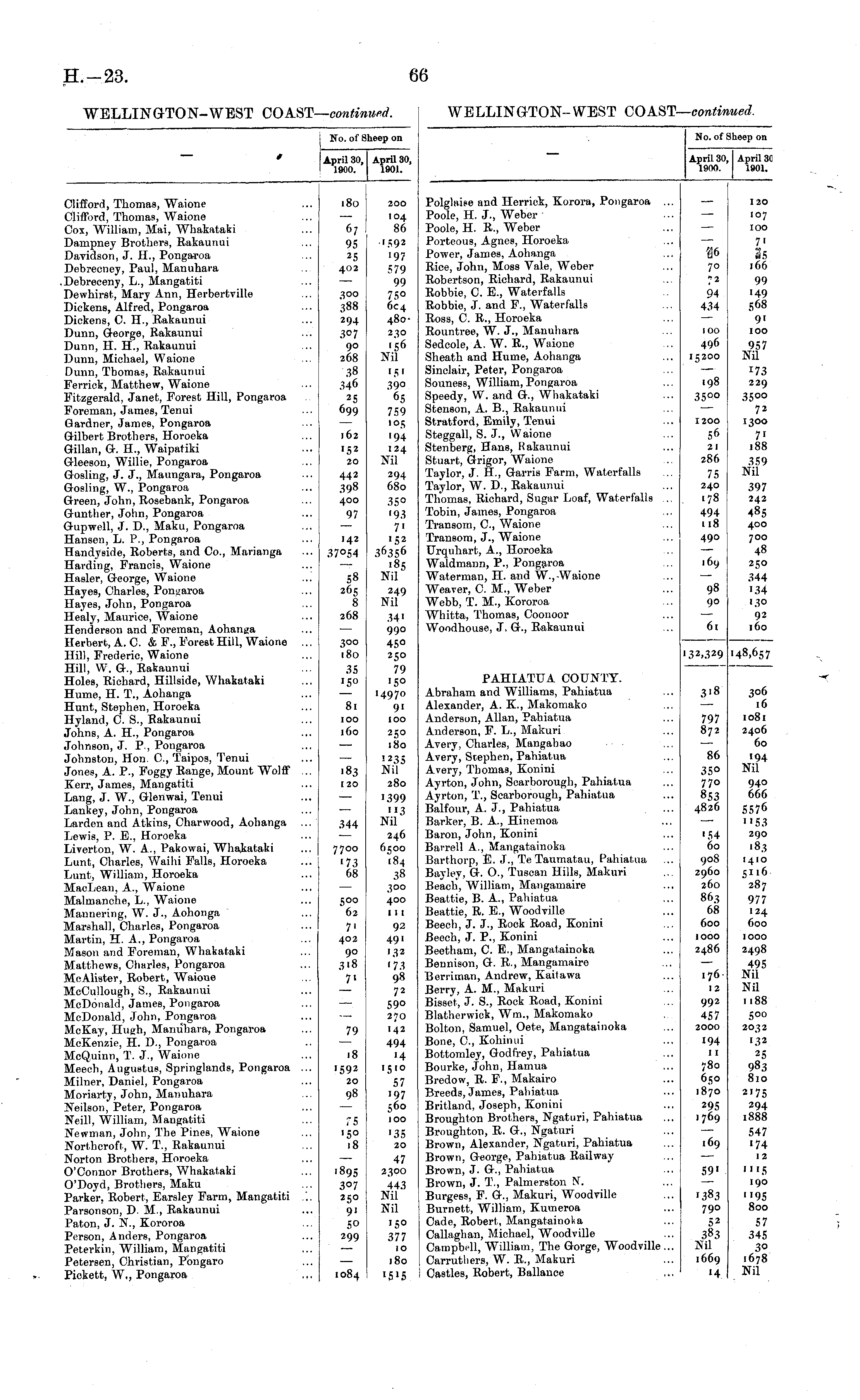 o. 01 ieep on # April 30, 1900. April 30, 1901. Clifford, Thomas, Waione Clifford, Thomas, Waione Cox, William, Mai, Whakataki Dampney Brothers, Rakaunui Dayidson, J. H., Pongaroa Debrecney, Paul, Manuhara Debreceny, L., Mangatiti Dewhirst, Mary Ann, HerbertTille Dickens, Alfred, Pongaroa Dickens, C. H., Rakaunui Dunn, Q-eorge, Rakaunui Dunn, H. H., Rakaunui Dunn, Michael, Waione Dunn, Thomas, Rakaunui Ferrick, Matthew, Waione Fitzgerald, Janet, Forest Hill, Pongaroa Foreman, James, Tenui Gardner, James, Pongaroa Gilbert Brothers, Horoeka Gillan, a. H., Waipatiki Gleeson, Willie, Pongaroa G-osling, J. J., Maungara, Pongaroa Gosling, W., Pongaroa Green, John, Rosebank, Pongaroa Gunther, John, Pongaroa G-upwell, J. D., Maku, Pongaroa Hansen, L. P., Pongaroa Handyside, Roberts, and Co., Marianga Harding, Francis, Waione Hasler, George, Waione Hayes, Charles, Ponjjaroa Hayes, John, Pongaroa Healy, Maurice, Waione Henderson and Foreman, Aohanga Herbert, A. C. & F., Forest Hill, Waione ... Hill, Frederic, Waione Hill, W. G., Rakaunui Holes, Richard, Hillside, Whakataki Hume, H. T., Aohanga Hunt, Stephen, Horoeka Hyland, C. S., Rakaunui Johns, A. H., Pongaroa Johnson, J. P., Pongaroa Johnston, Hon. C, Taipos, Tenui Jones, A. P., Foggy Range, Mount Wolff ... Kerr, James, Mangatiti Lang, J. W., Glenwai, Tenui Lankey, John, Pongaroa Larden and Atkins, Charwood, Aohanga Lewis, P. B., Horoeka Liverton, W. A.., Pakowai, Whakataki Lunt, Charles, Waihi Falls, Horoeka Lunt, William, Horoeka MacLean, A., Waione Malmanche, L., Waione Mannering, W. J., Aohonga Marshall, Charles, Pongaroa Martin, H. A., Pongaroa Mason and Foreman, Whakataki Matthews, Charles, Pongaroa McAlister, Robert, Waione McCullough, S., Rakaunui McDonald, James, Pongaroa McDonald, John, Pongaroa McKay, Hugh, Manuhara, Pongaroa McKenzie, H. D., Pongaroa McQuinn, T. J., Waione Meech, Augustus, Springlands, Pongaroa ... Milner, Daniel, Pongaroa Moriarty, John, Manuhara Neilson, Peter, Pongaroa Neill, William, Mangatiti Newman, John, The Pines, Waione Northcroft, W. T., Rakaunui Norton Brothers, Horoeka O'Connor Brothers, Whakataki O'Doyd, Brothers, Maku Parker. Robert, Earsley Farm, Mangatiti ... Parsonson, D M., Rakaunui Paton, J. N., Kororoa Person, Anders, Pongaroa Peterkin, William, Mangatiti Petersen, Christian, Pongaro Pickett, W., Pongaroa 180 67 95 25 402 300 388 294 307 90 268 38 346 699 162 ■52 20 442 398 400 97 142 37O54 58 265 8 268 300 180 35 "5° 81 100 160 2OO 104 86 I59 2 197 579 99 75° 6C4 480230 '56 Nil ■5' 39° 65 759 'OS 194 124 Nil 294 680 35° '93 7> ■5 2 3635° ■85 Nil 249 Nil 34' 990 45° 250 79 '5° 14970 9i 100 250 1S0 '83 120 '- 235 Nil 280 344 7700 '73 68 1399 "3 Nil 246 6500 184 38 300 400 1 1 1 500 62 7' 402 90 3'8 7' 92 491 132 '73 98 72 59° 270 142 494 •4 1510 57 197 560 100 '35 20 79 18 '592 20 98 T5 '5° 18 ■895 307 250 9' 50 299 47 2300 443 Nil Nil 150 377 10 180 1084 '515