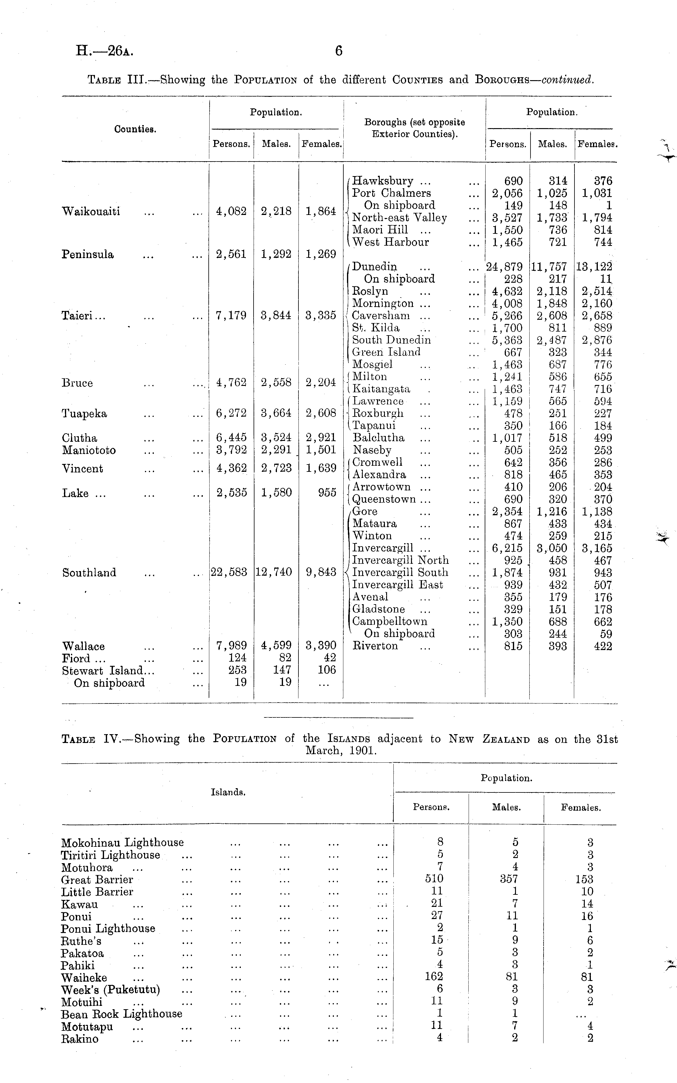 Table IV. —Showing the Population of the Islands adjacent to New Zealand as on the 31st March, 1901.