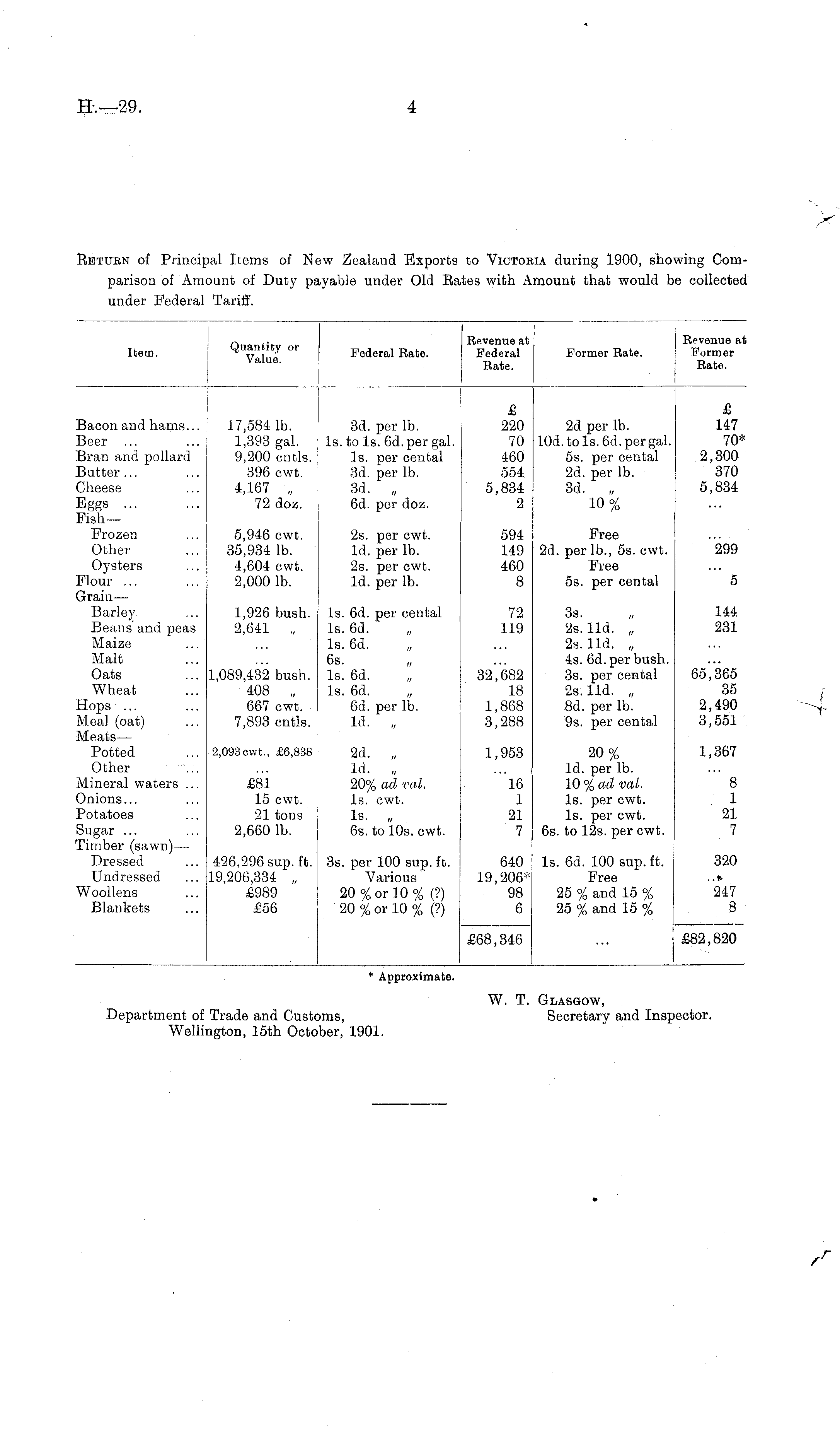 W. T. Glasgow, Department of Trade and Customs, Secretary and Inspector. Wellington, 15th October, 1901.