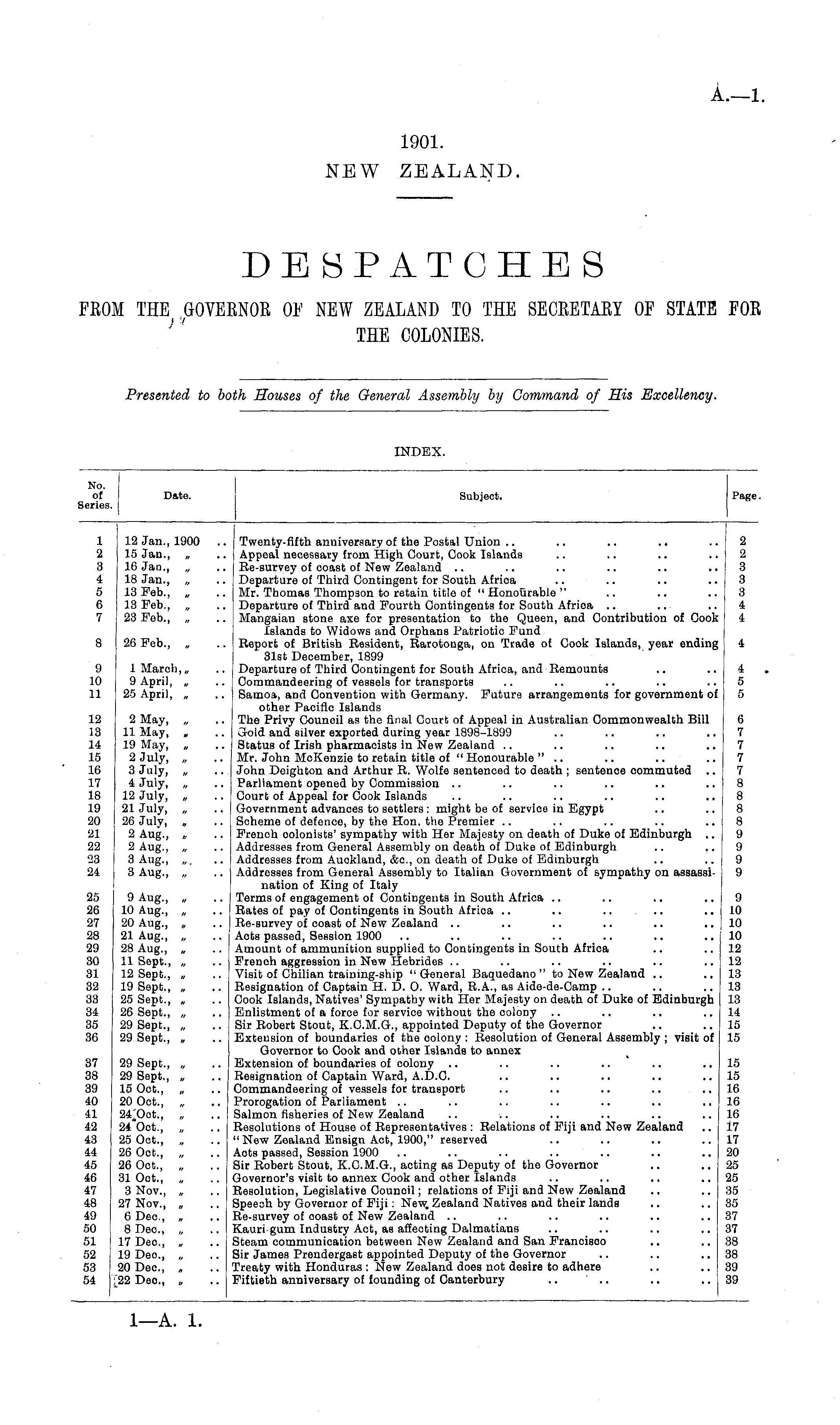 DESPATCHES FROM THE GOVERNOR OF NEW ZEALAND TO THE SECRETARY OF STATE FOR THE COLONIES.