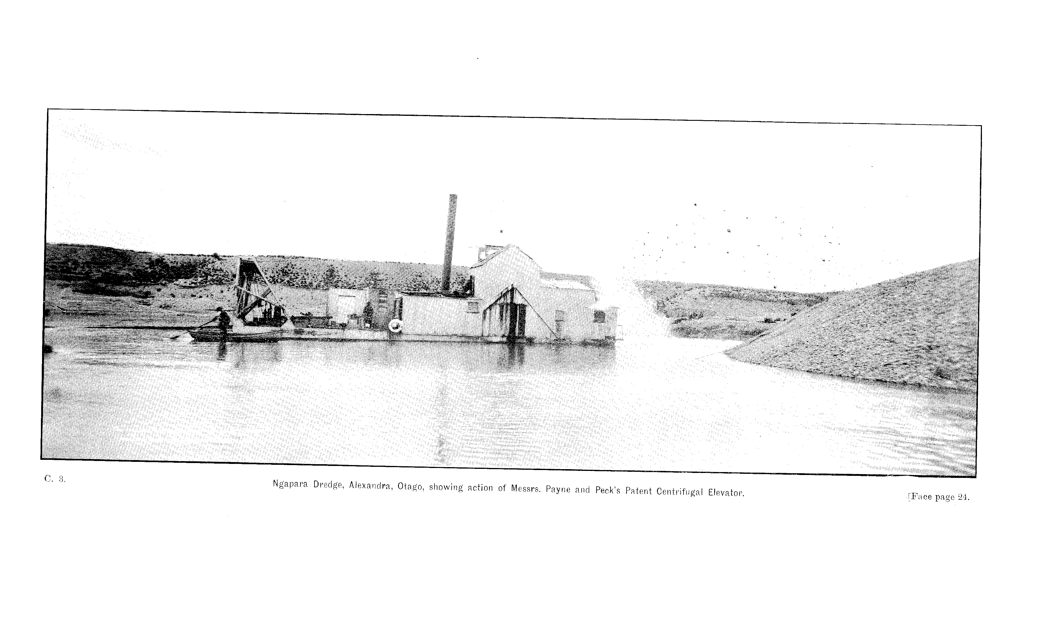 Ngapara Dredge, Alexandra, Otago, showing action of Messrs. Payne and Peck's Patent Centrifugal Elevator.