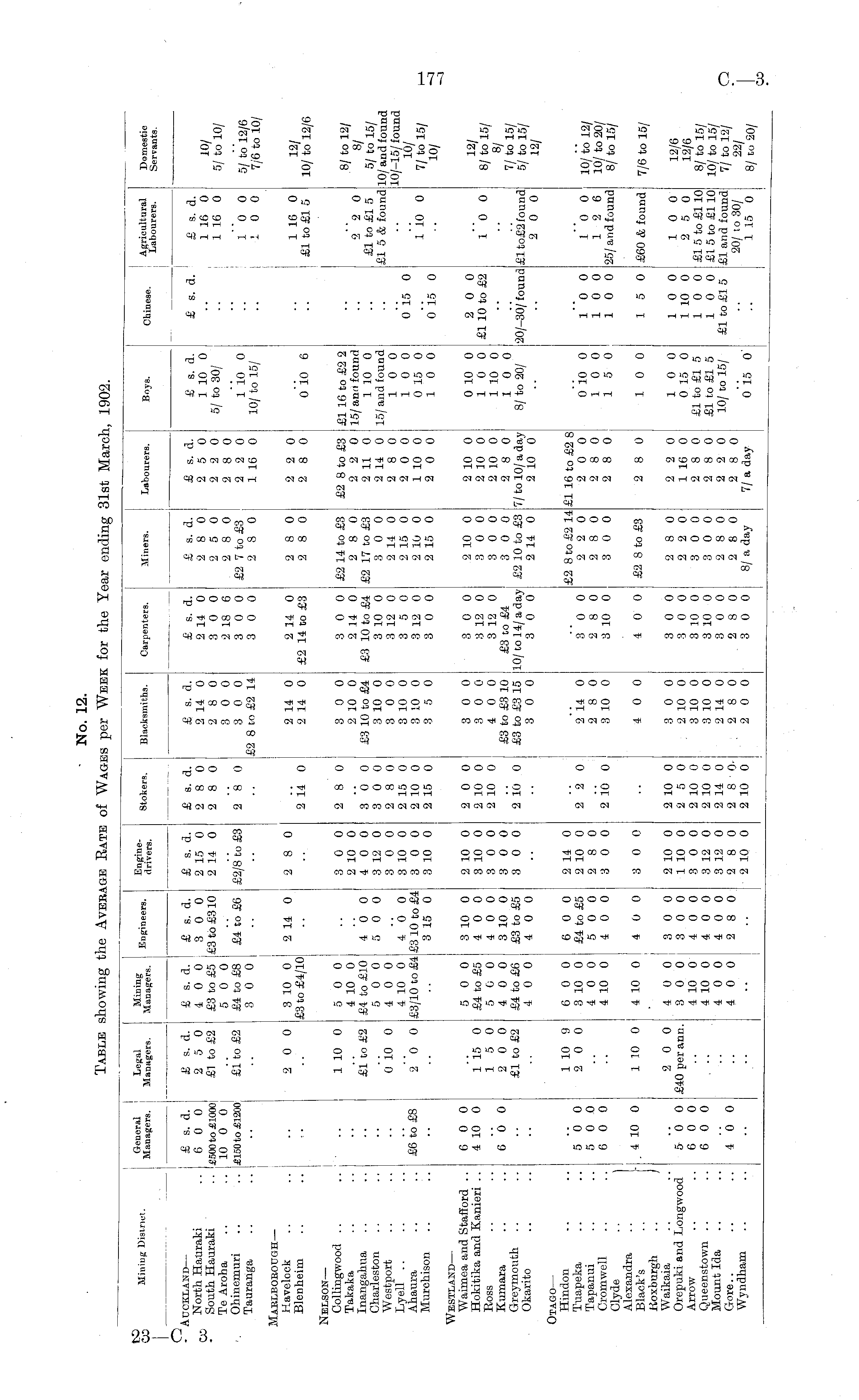 No. 12. Table showing the Average Rate of Wages per Week for the Year ending 31st March, 1902.