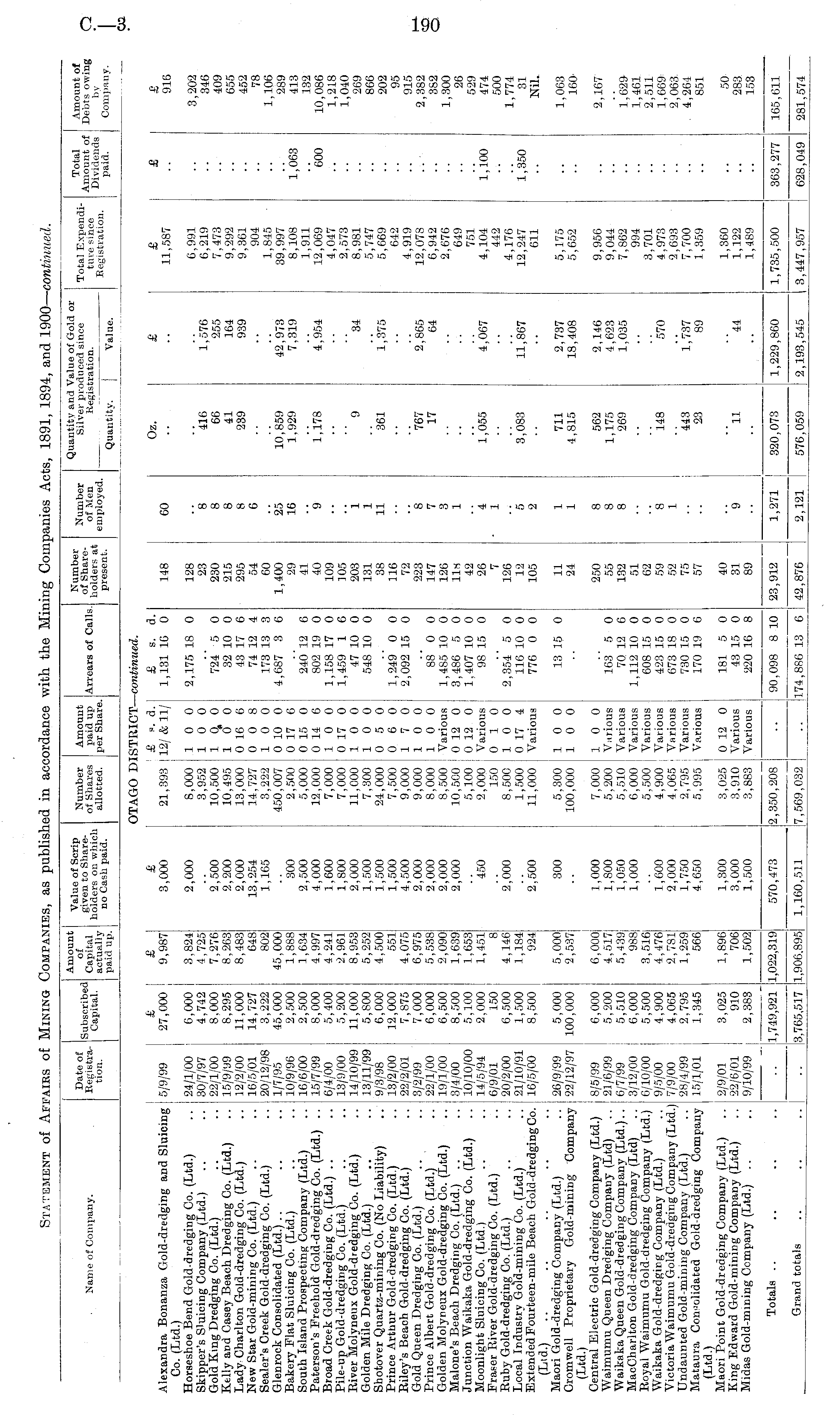 Statement of Affairs of Mining Companies, as published in accordance with the Mining Companies Acts, 1891, 1894, and 1900— continued.
