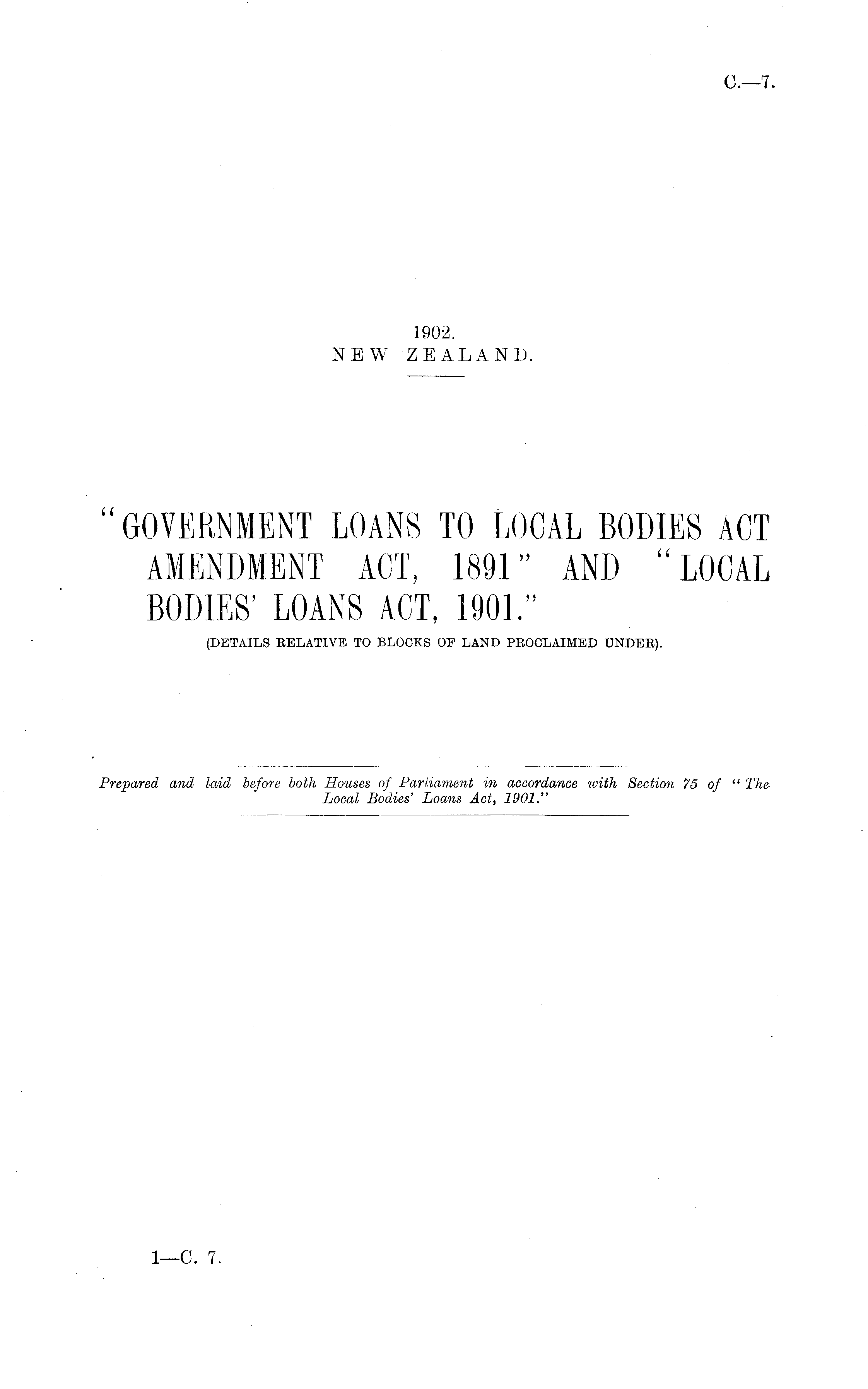 "GOVERNMENT LOANS TO LOCAL BODIES ACT AMENDMENT ACT, 1891" AND "LOCAL BODIES' LOANS ACT, 1901." (DETAILS RELATIVE TO BLOCKS OF LAND PROCLAIMED UNDER).