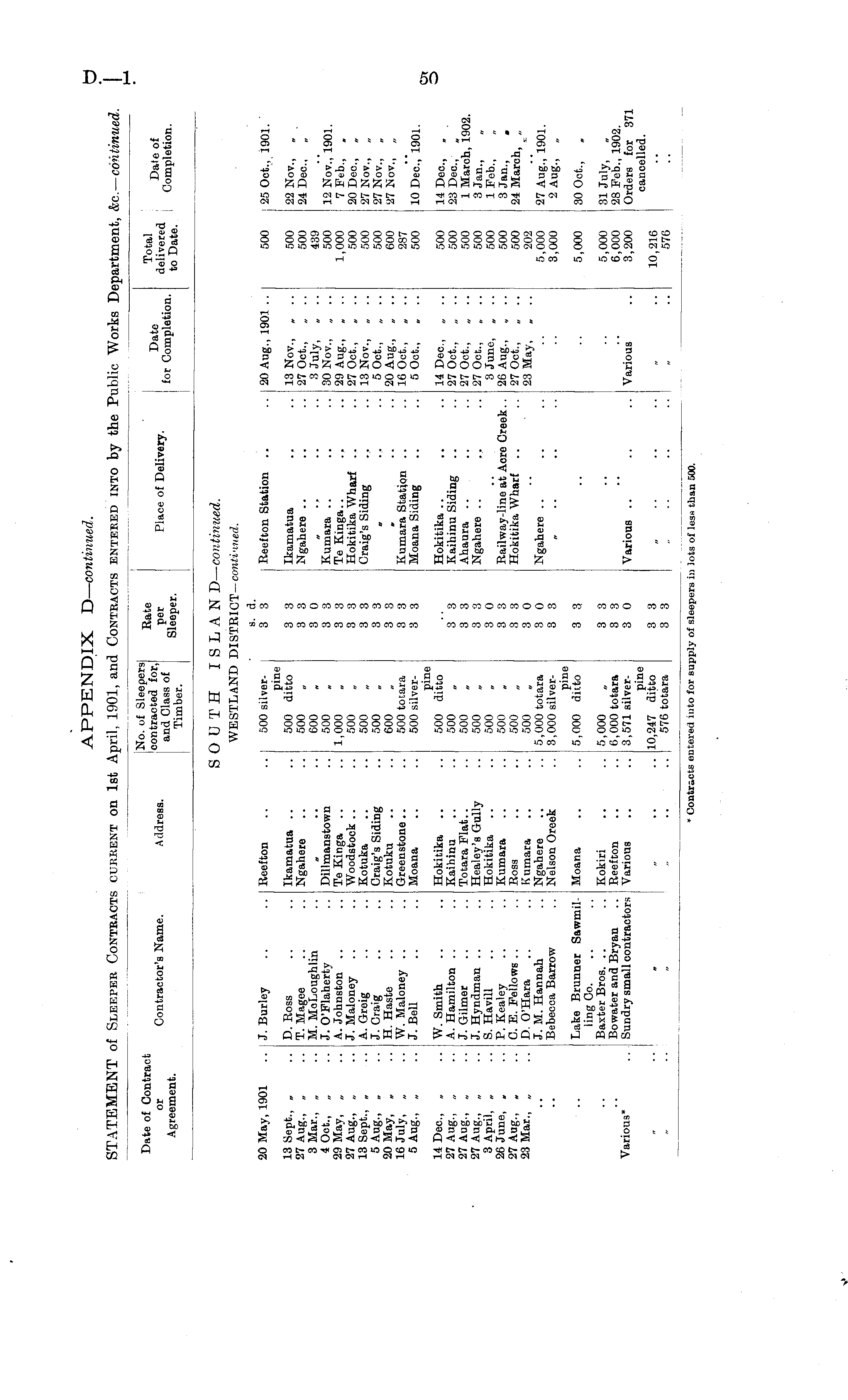 APPENDIX D— continued. STATEMENT of Sleeper Contracts current on 1st April, 1901, and Contracts entered into by the Public Works Department, &c.—continued.