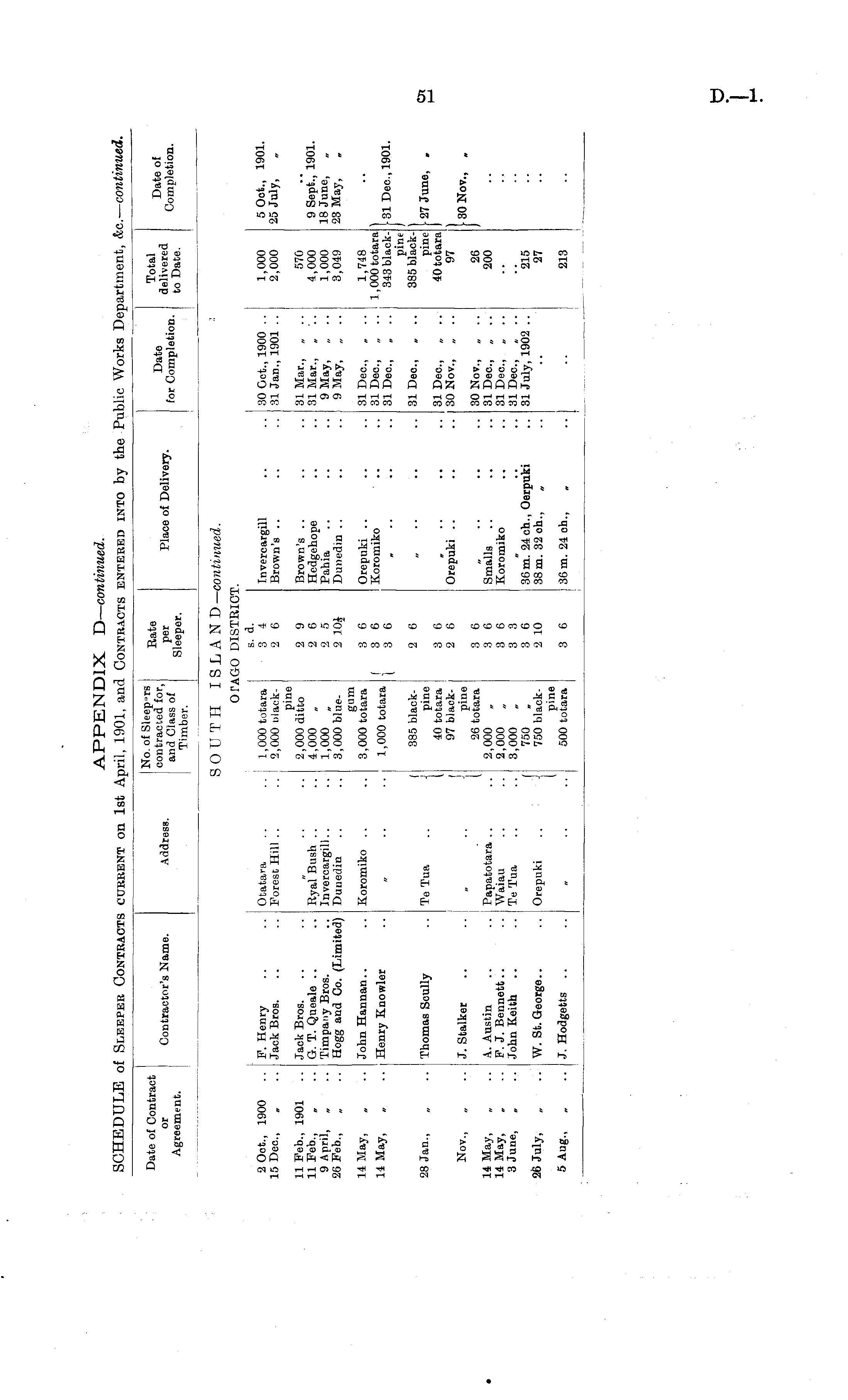 APPENDIX D— continued. SCHEDULE of Sleeper Contracts current on 1st April, 1901, and Contracts entered into by the Public Works Department, &c.— continued.