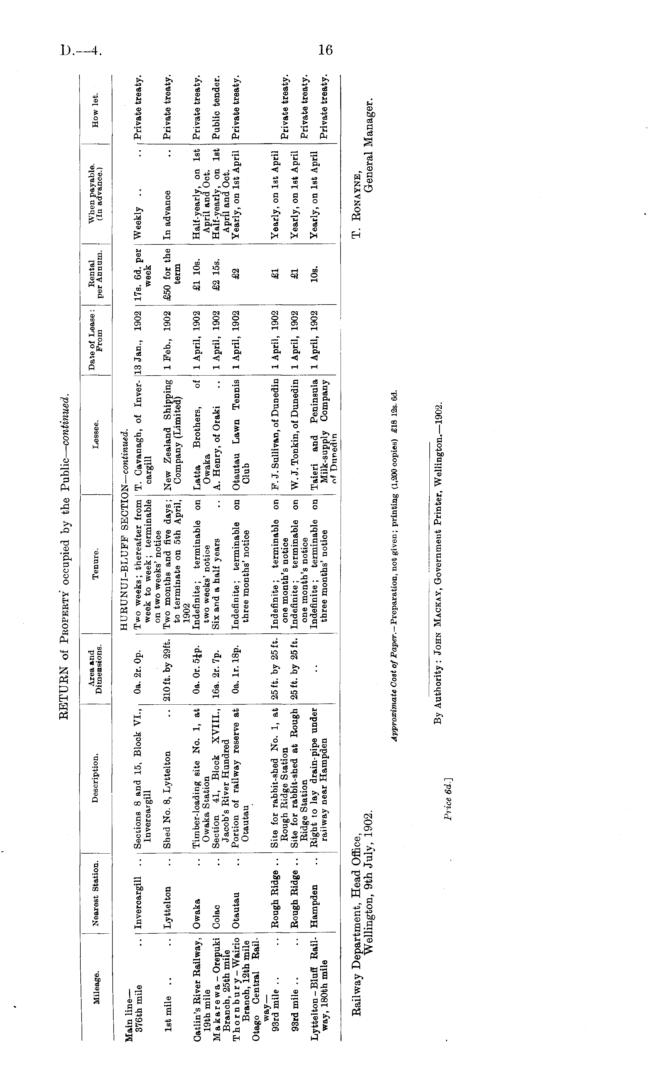 Eailway Department, Head Office, T. Bonayne, Wellington, 9th July, 1902. General Manager. Approximate Cost of Paper.— Preparation, not given; printing (1,200 copies) £18 12s. 6d.