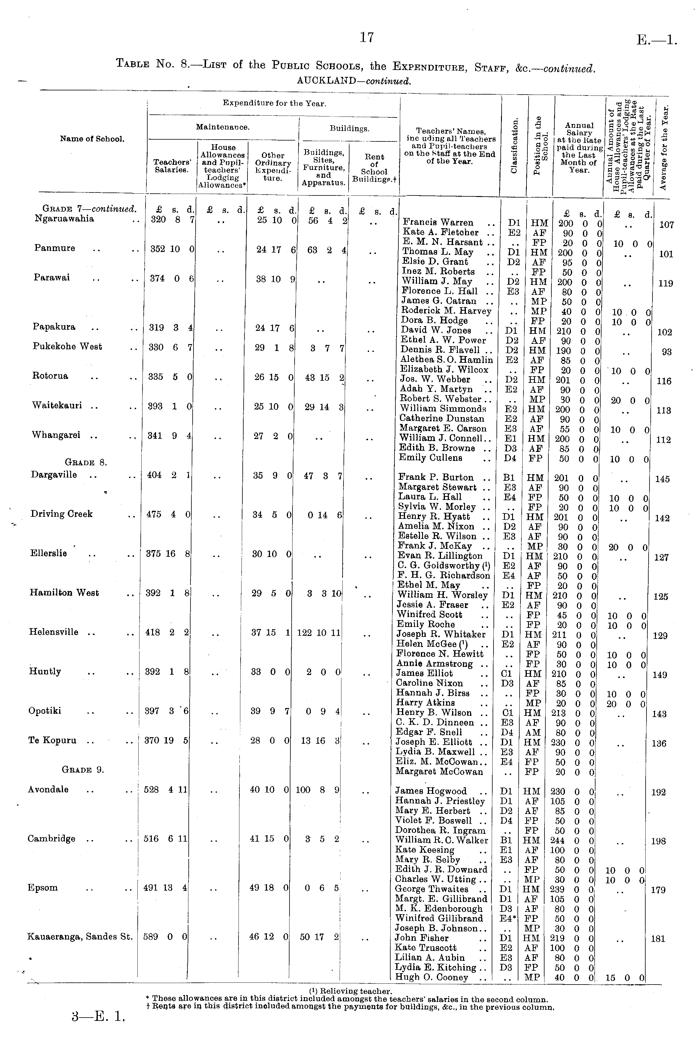 Table No. 8.—List of the Public Schools, the Expenditure, Staff, &c.— continued. AUCKLAND— continued.