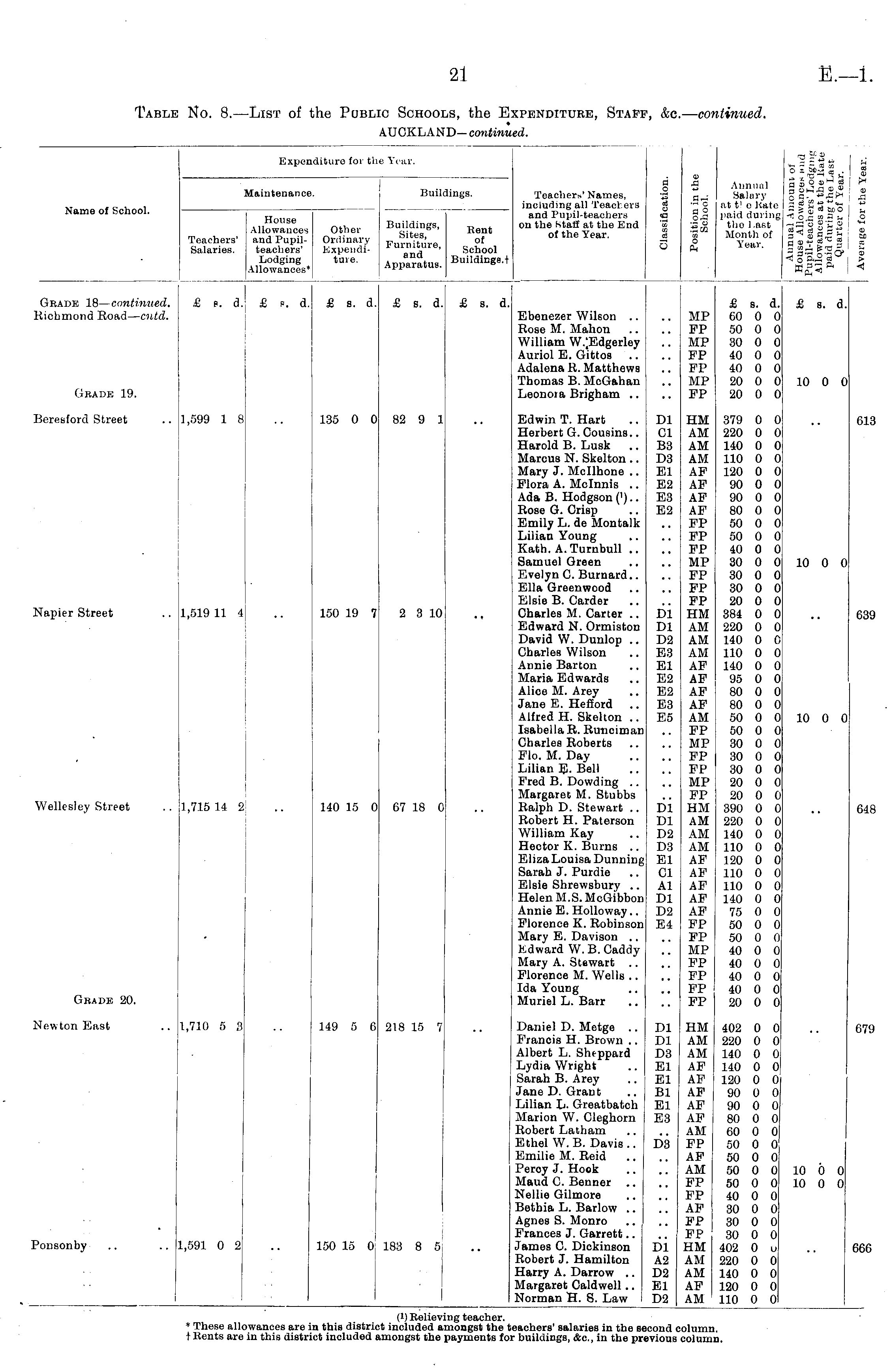 Table No. 8.—List of the Public Schools, the Expenditure, Staff, &c.— continued. AUCKLAND- continued.