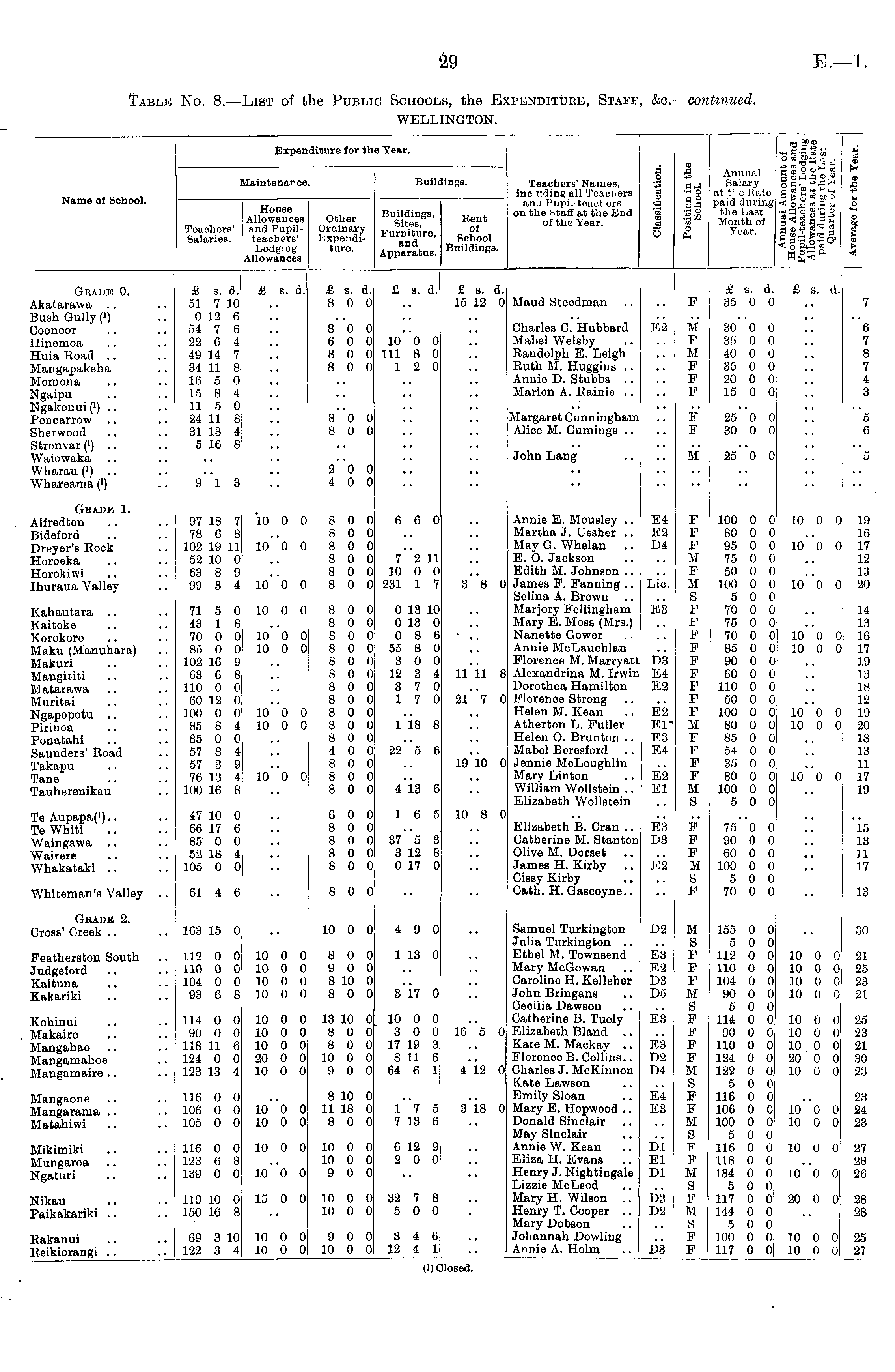 Table No. 8.—List of the Public Schools, the Expenditure, Staff, &c.— continued. WELLINGTON.