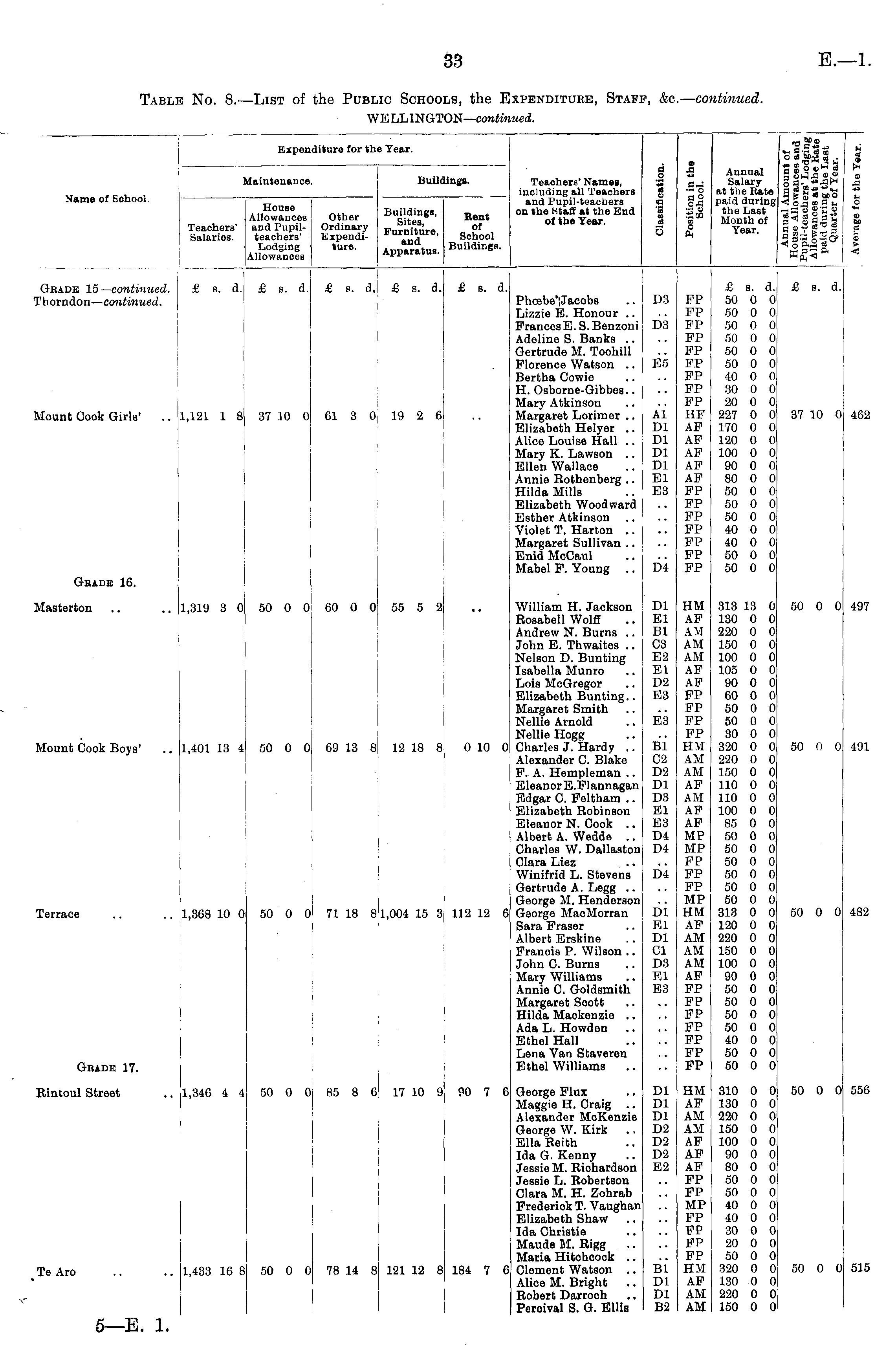 Table No. 8.—List of the Public Schools, the Expenditure, Staff, &c.— continued. WELLINGTON— continued.