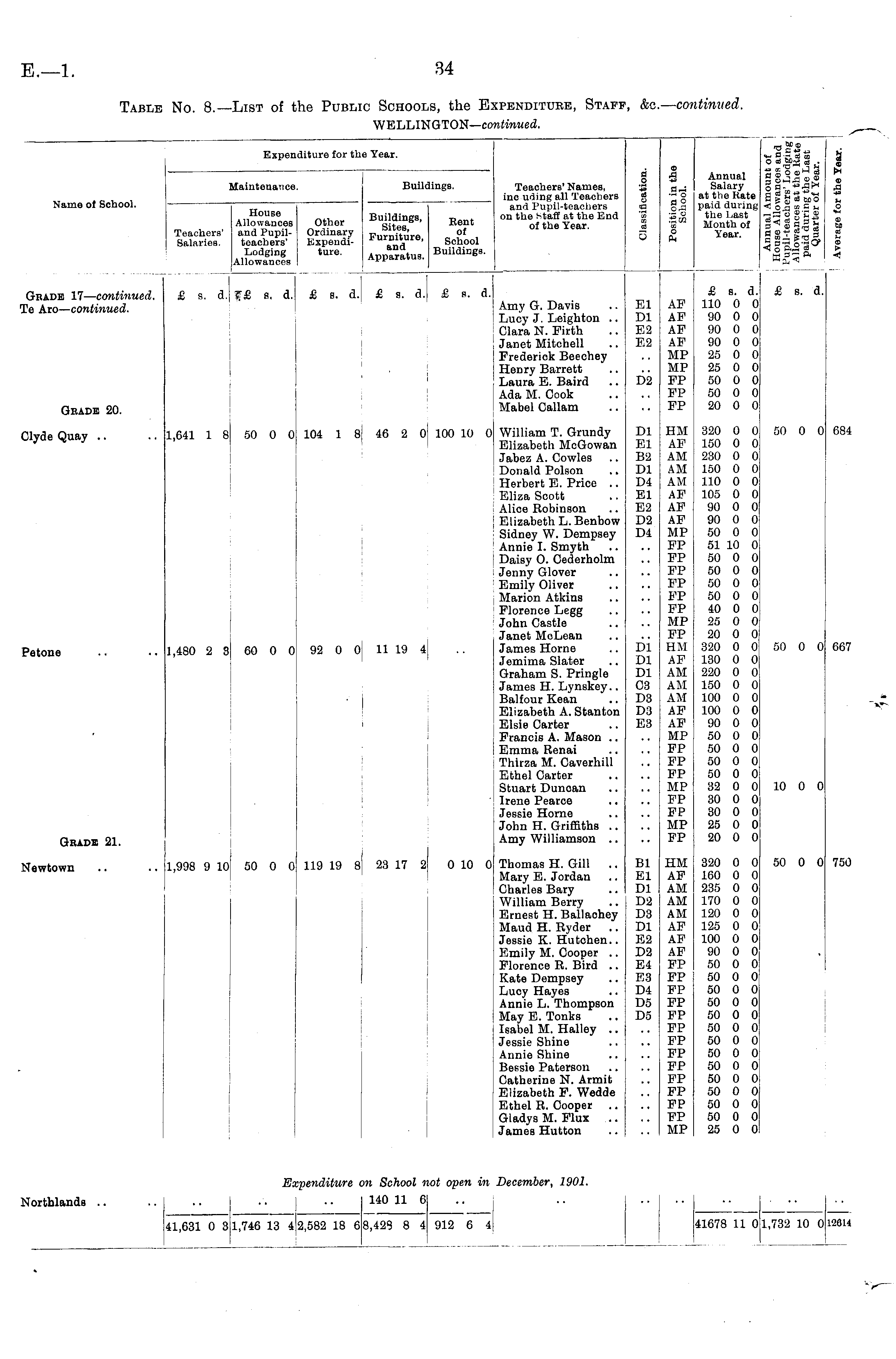 Table No. 8.—List of the Public Schools, the Expenditure, Staff, &c.— continued. WELLINGTON— continued.
