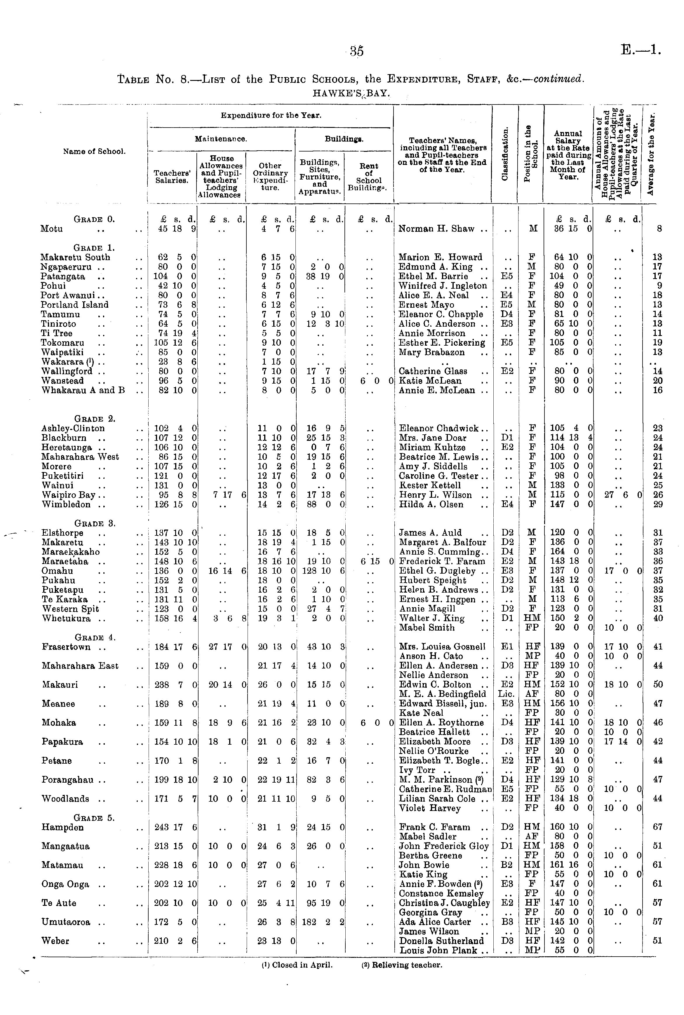 Table No. 8.—List of the Public Schools, the Expenditure, Staff, &c.— continued. HAWKE'S BAY.