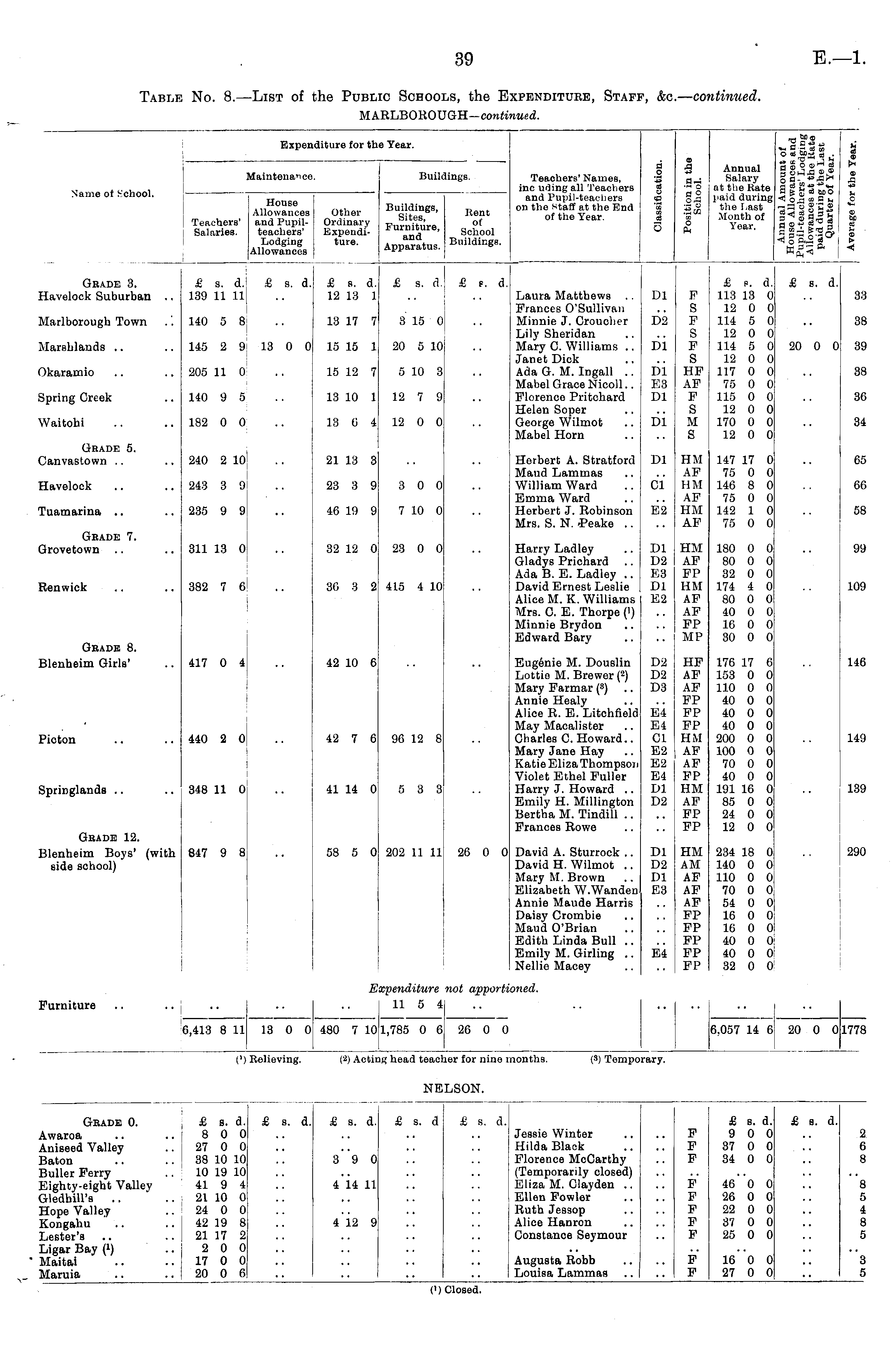 Table No. 8.—List of the Public Schools, the Expenditure, Staff, &c. — continued. MARLBOROUGH— continued.