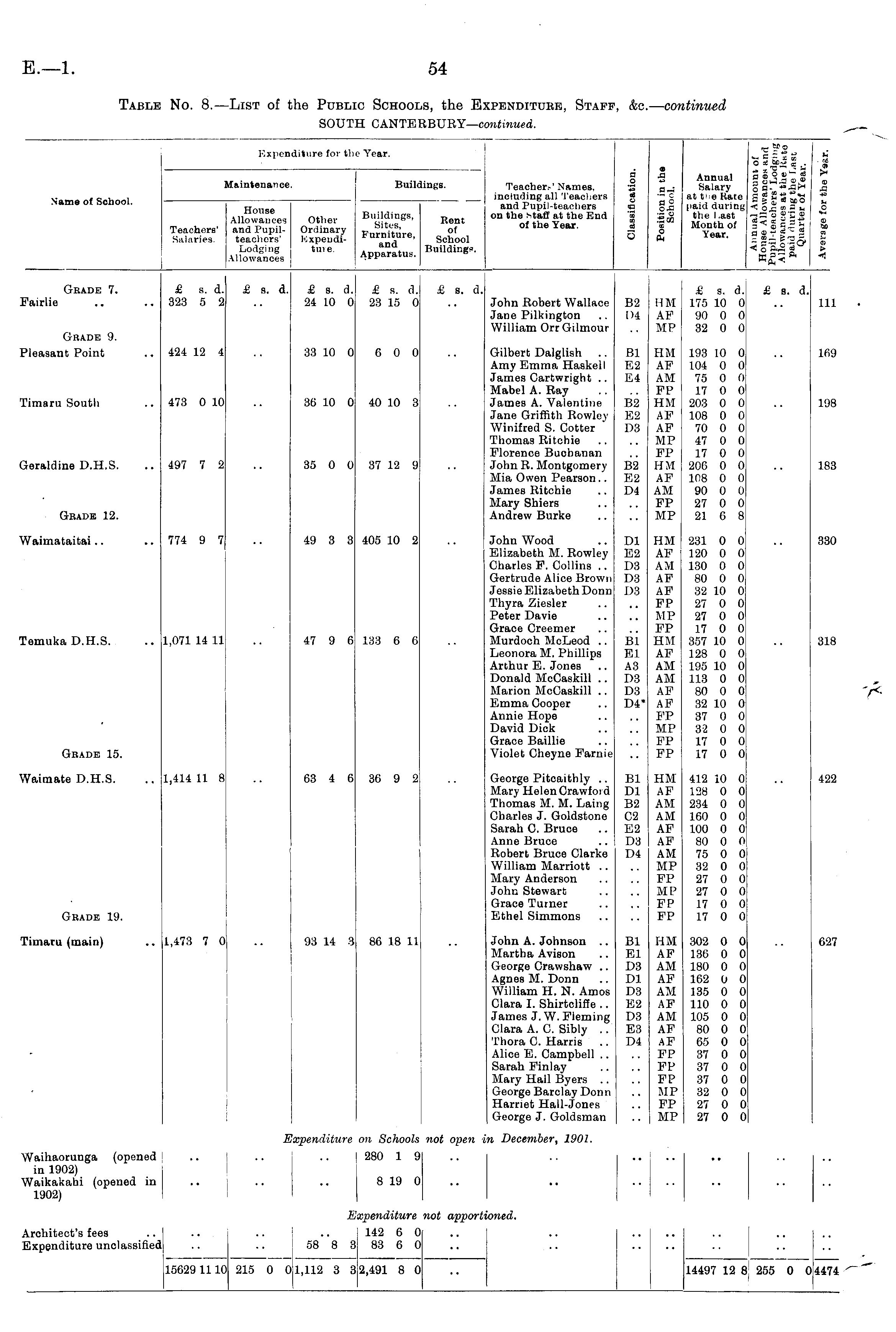 Table No. 8.—List of the Public Schools, the Expenditure, Staff, &c.— continued SOUTH CANTERBURY— continued.