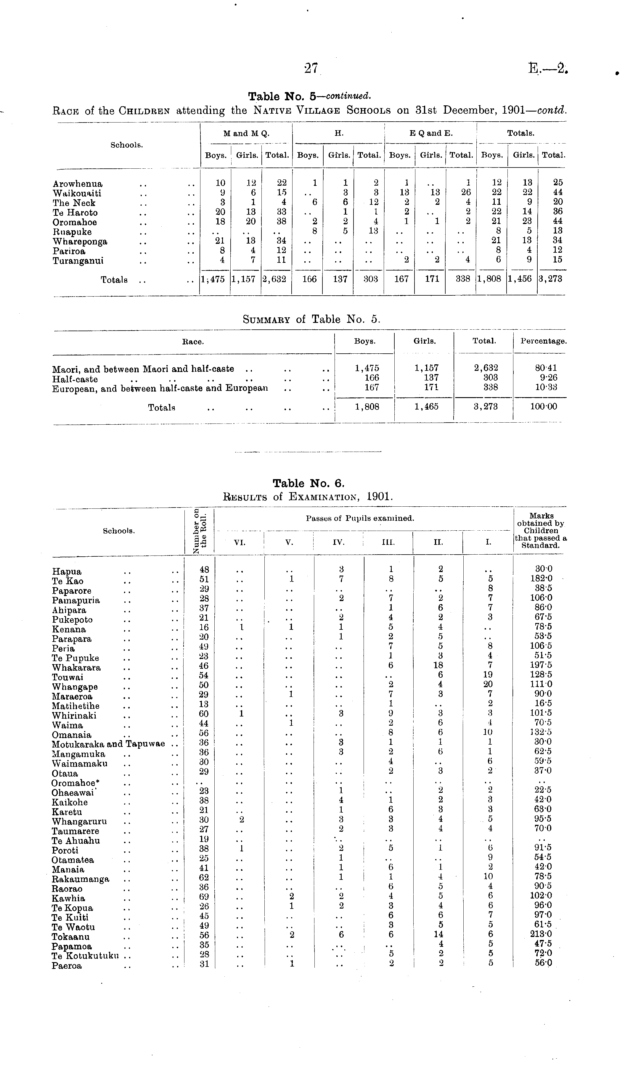 Table No. 5—continued. Race of the Children attending the Native Village Schools on 31st December, 1901— contd.