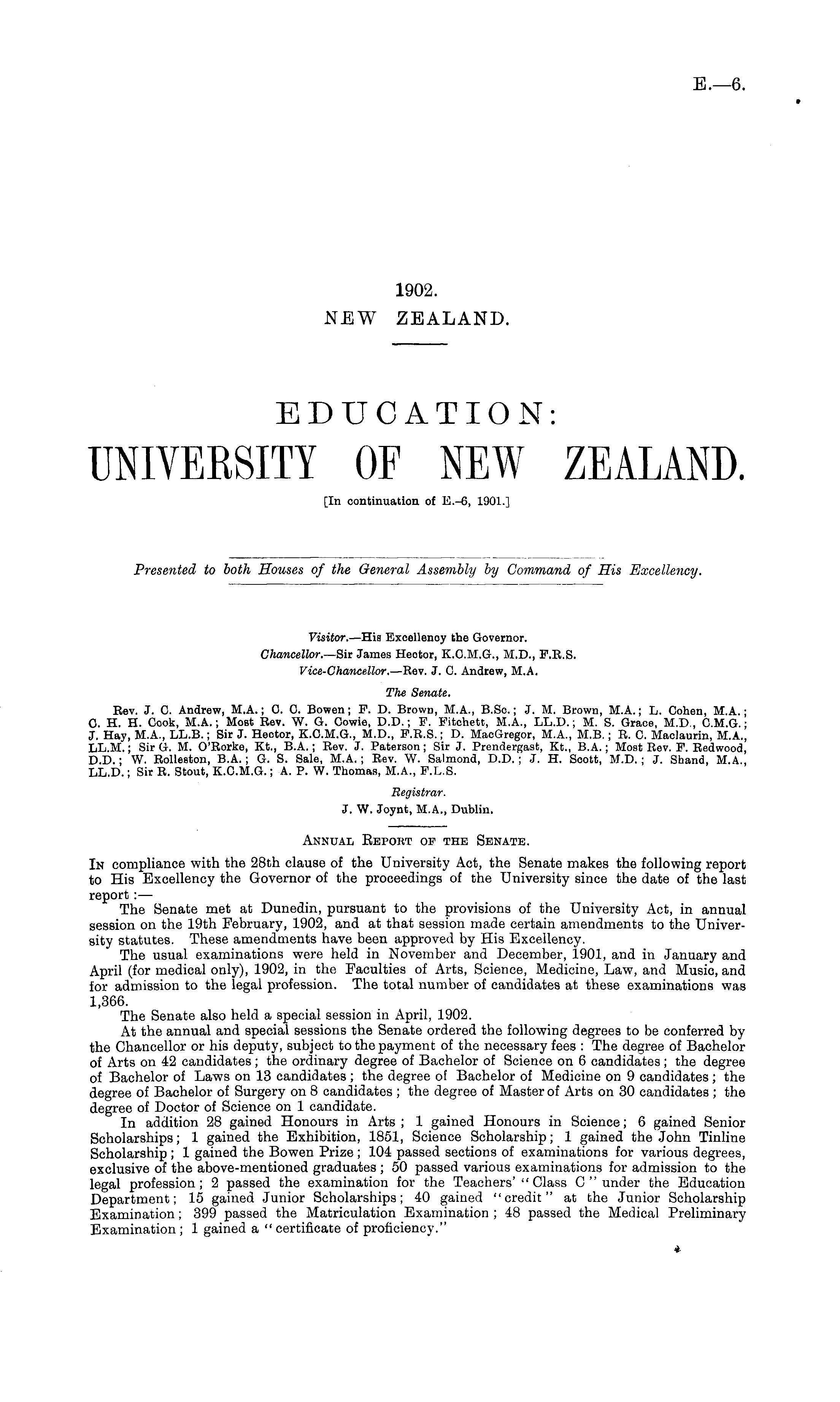 EDUCATION: UNIVERSITY OF NEW ZEALAND. [In continuation of E.-6, 1901.]