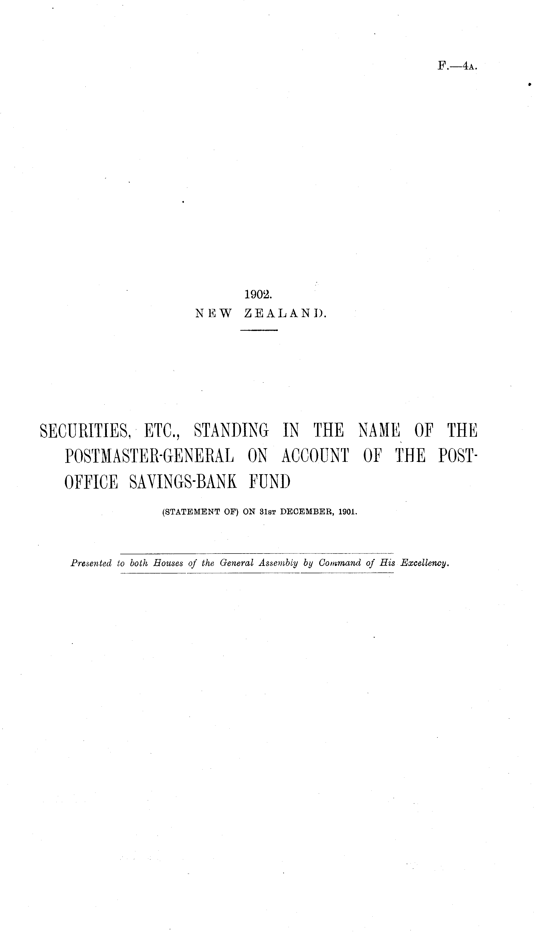SECURITIES, ETC., STANDING IN THE NAME OF THE POSTMASTER-GENERAL ON ACCOUNT OF THE POST-OFFICE SAVINGS-BANK FUND (STATEMENT OF) ON 31st DECEMBER, 1901.