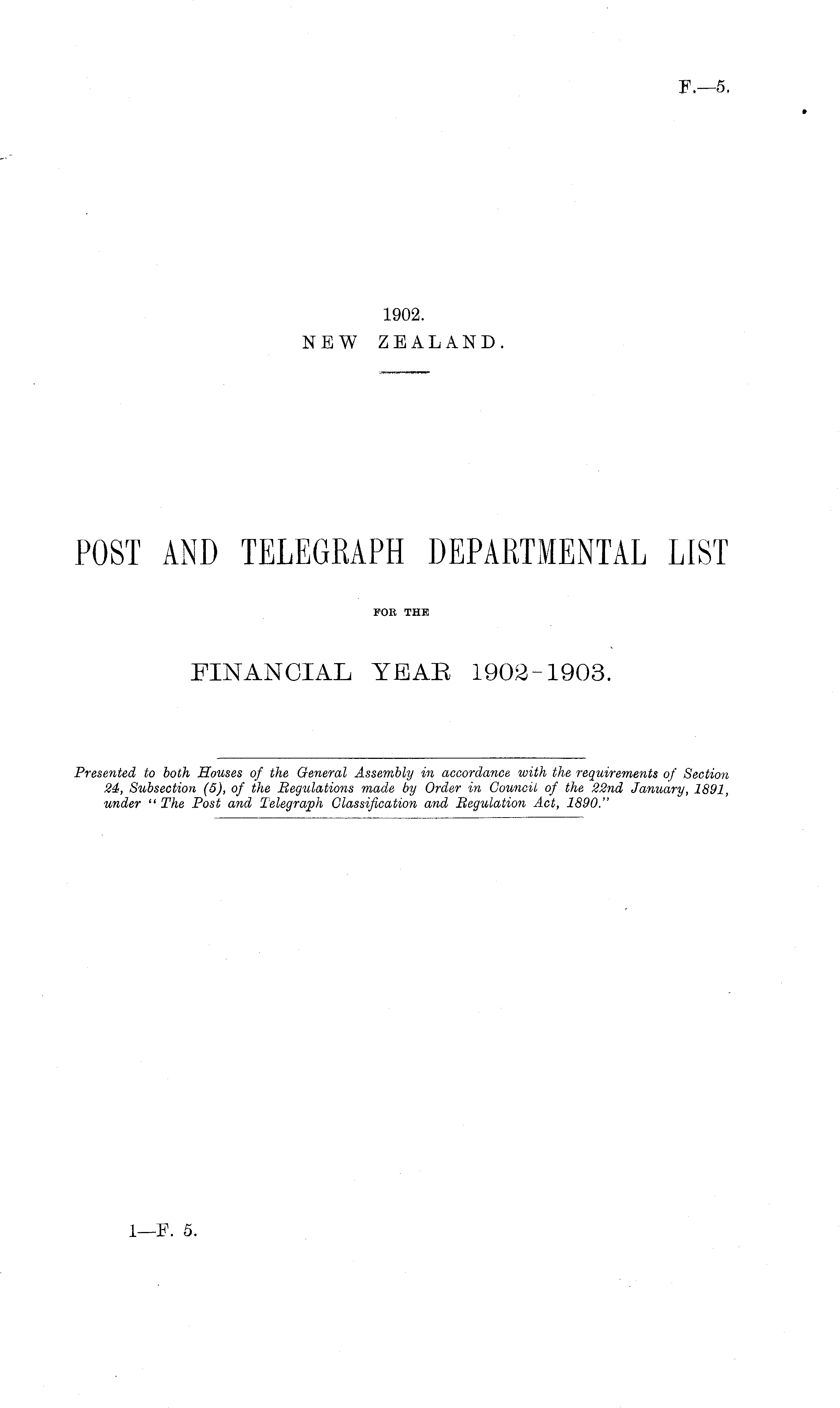 POST AND TELEGRAPH DEPARTMENTAL LIST FOR THE FINANCIAL YEAR 1902-1903.