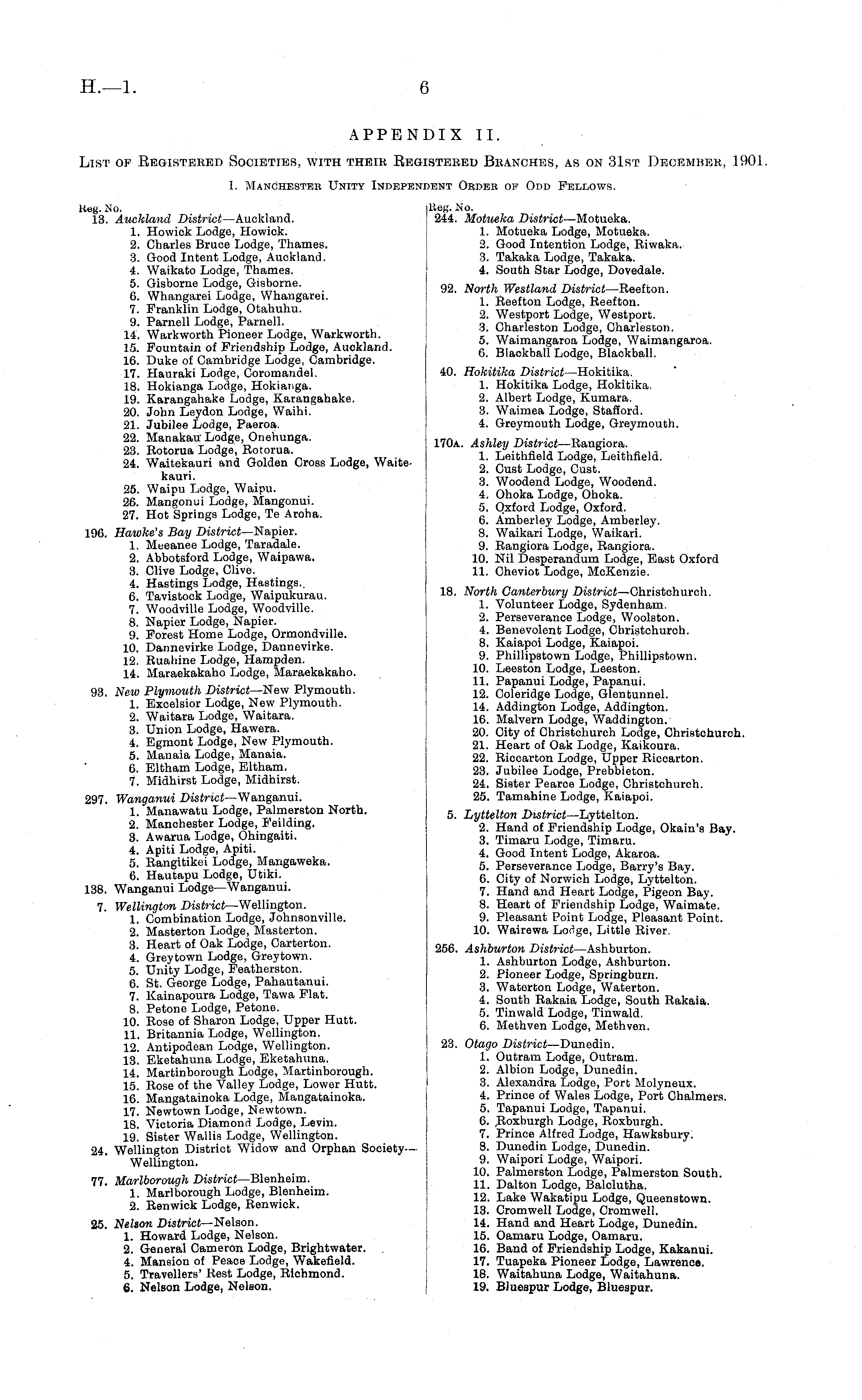 APPENDIX 11. List of Begistbred Societies, with theik Begistered Branches, as on 31st December, 1901. I. Manchester Unity Independent Order of Odd Fellows.