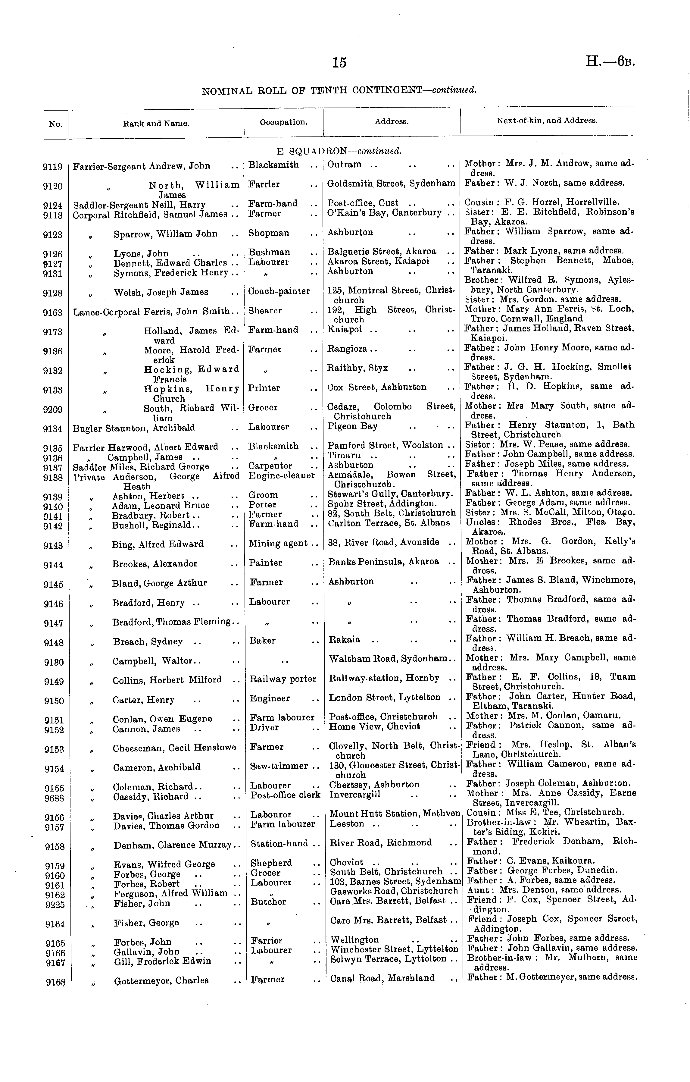 NOMINAL ROLL OF TENTH CONTINGENT— continued.