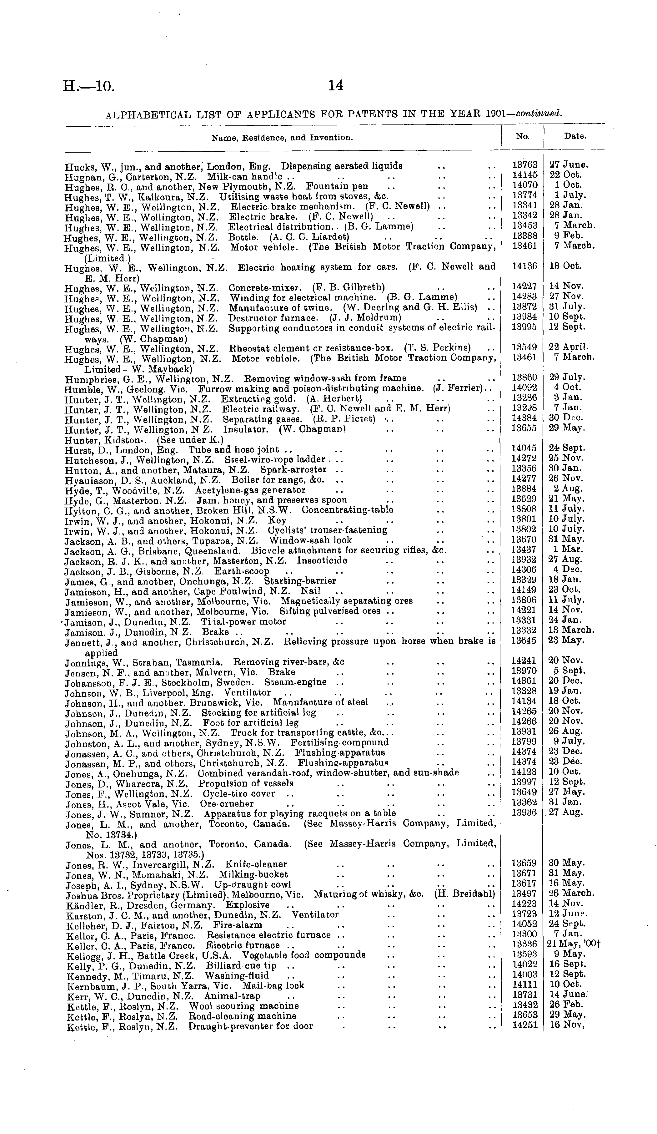 ALPHABETICAL LIST OF APPLICANTS FOR PATENTS IN THE YEAR 1901— continued.