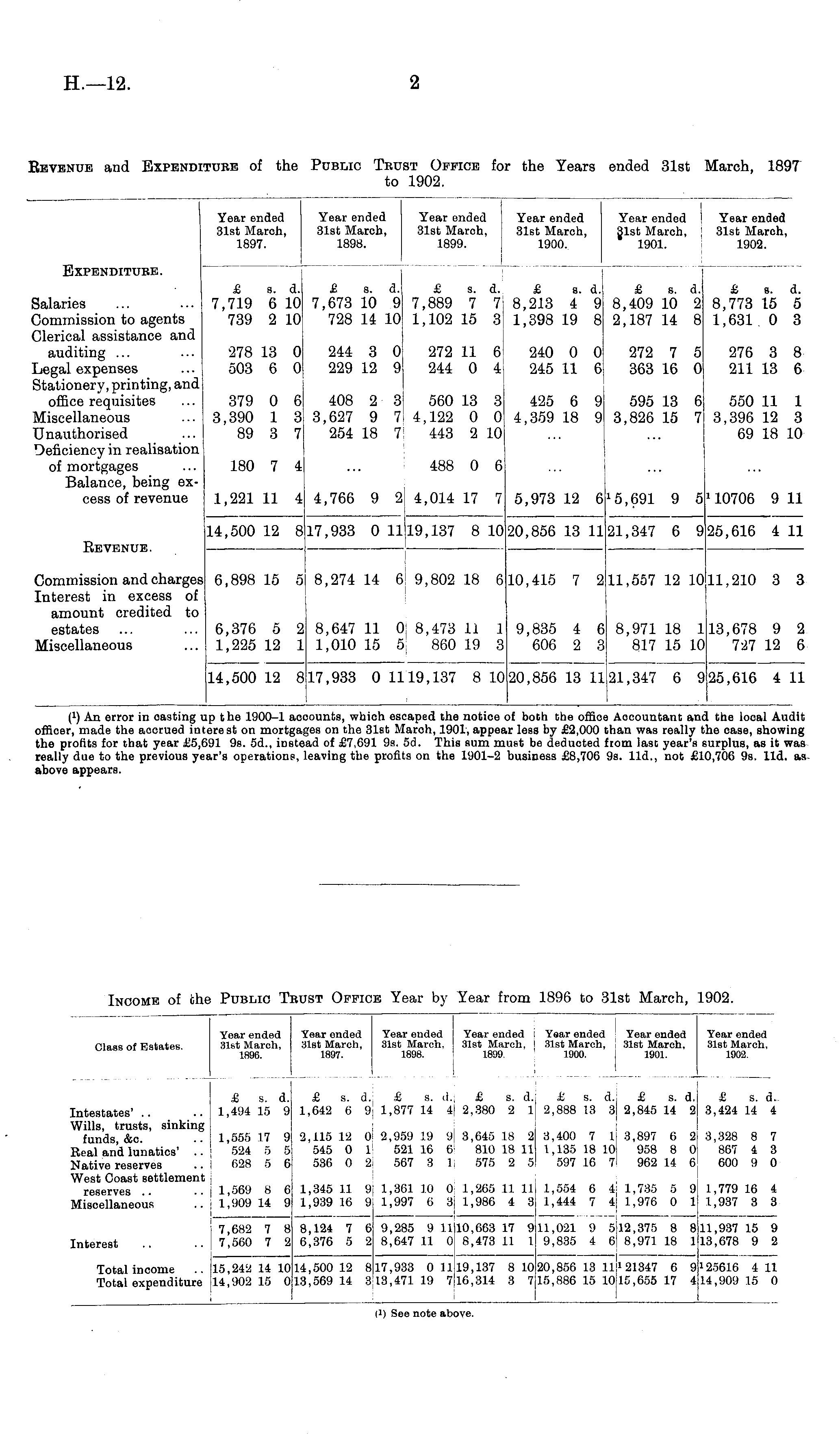 Revenue and Expenditure of the Public Trust Office for the Years ended 31st March, 1897 to 1902.