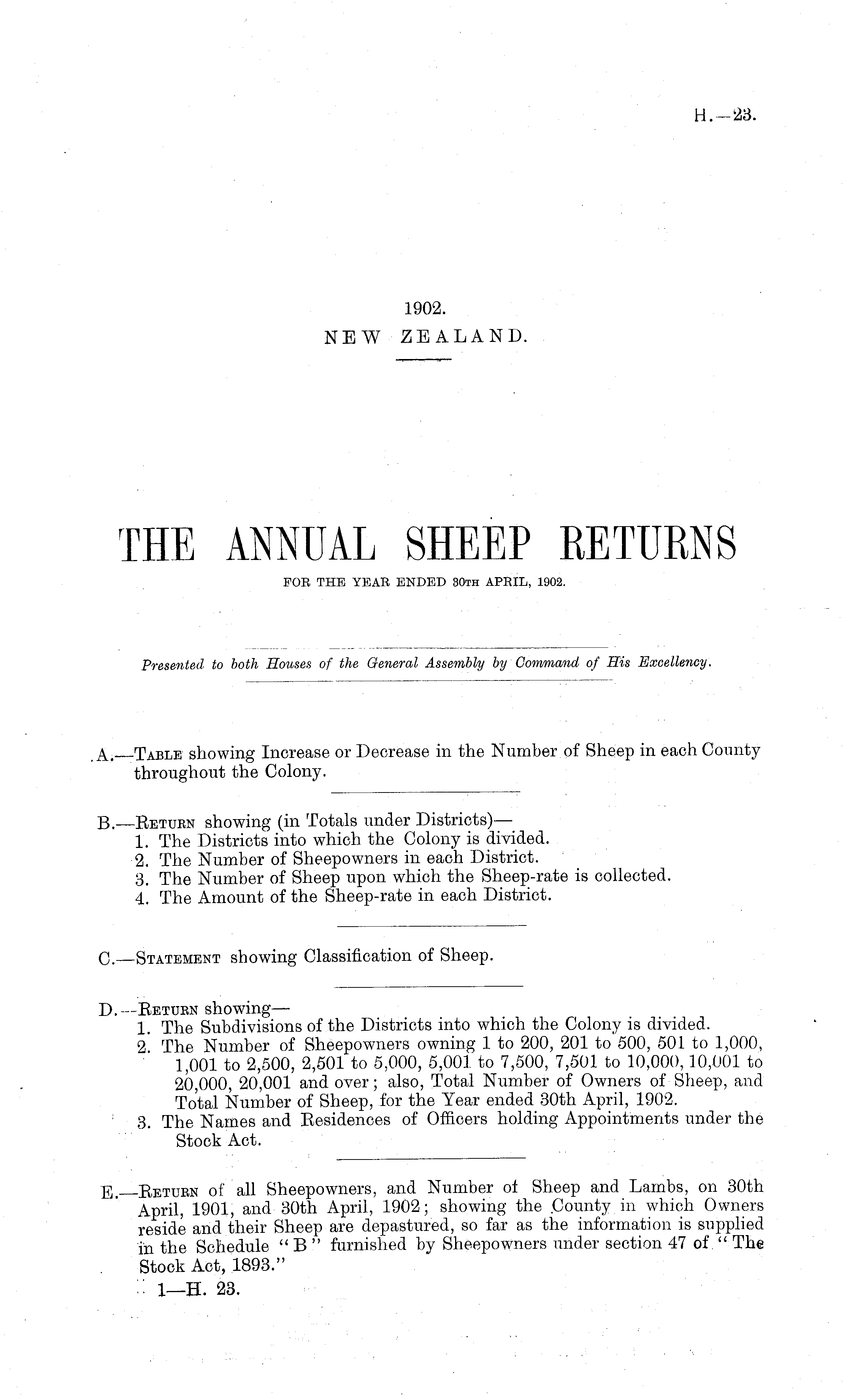 THE ANNUAL SHEEP RETURNS FOR THE YEAR ENDED 30th APRIL, 1902.