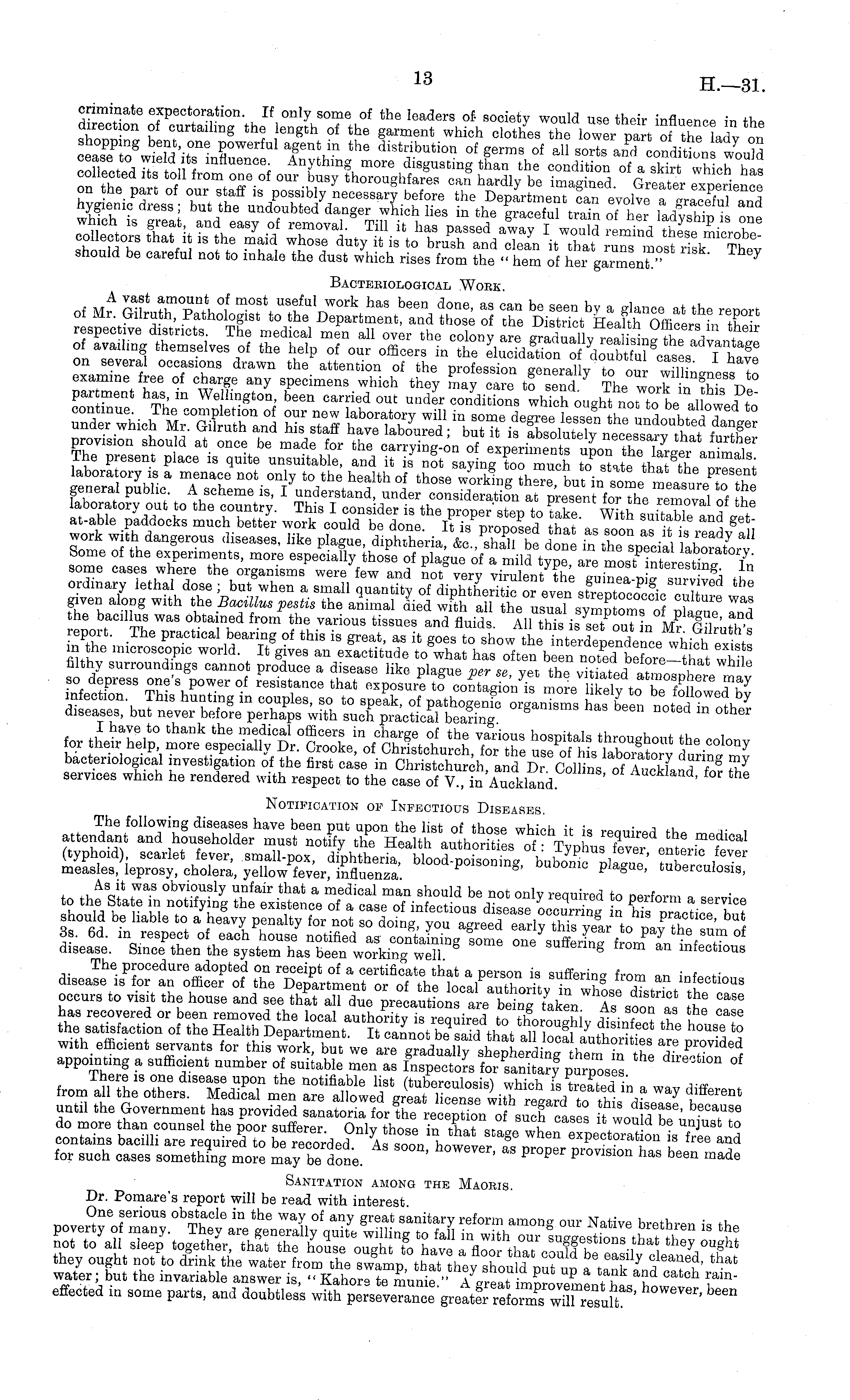 criminate expectoration. If only some of the leaders of- society would use their influence in th* should be careful not to inhale the dust which rises from the » hem of her garment" J Bacteriological Wobk f 0Ce ? B1 ° nB draWn the - attention Of the Profession generally to our w'lKnJess to work with dangerous diseases, like plague, diphtheria X ..SThJ doni in the peci XmC Some of the experiments, more especially those of plague of a mild type are most interesW ?n filthy surroundings cannot produce a disease like plague per se yet the v£ed atmoTnh services which he rendered with respect to the case of V., in Auckland for the Notification of Infectious Diseases β^ssmmimmm disease. Since then the system has been workin- well sunenng trom an infectious Sanitation among the Maokis. Dr. Pomare's report will be read with interest One serious obstacle in the way of any great sanitary reform among our Native hrPtWn i ,k