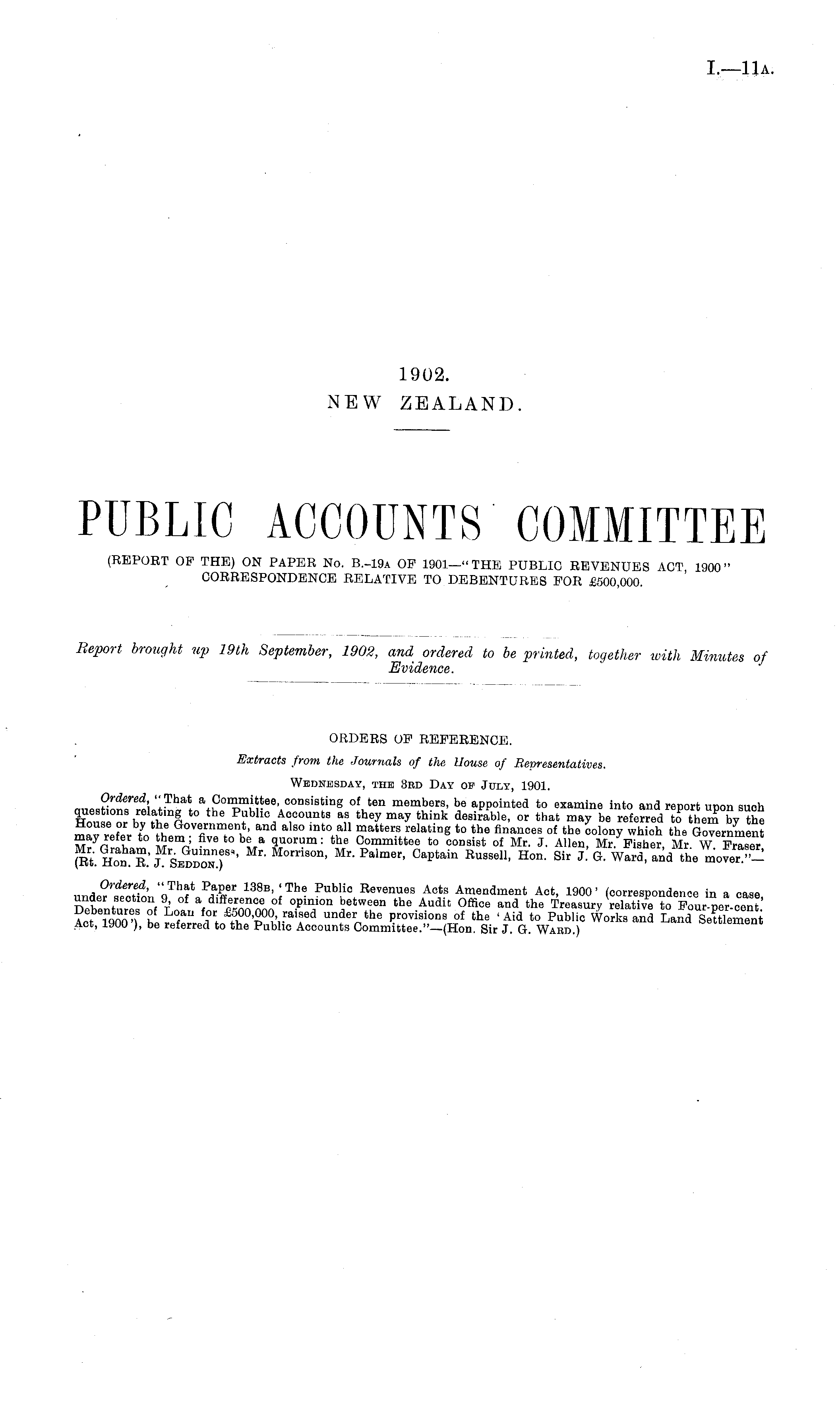 PUBLIC ACCOUNTS COMMITTEE (REPORT OF THE) ON PAPER No. B.-19a OF 1901—"THE PUBLIC REVENUES ACT, 1900" CORRESPONDENCE RELATIVE TO DEBENTURES FOR £500,000.