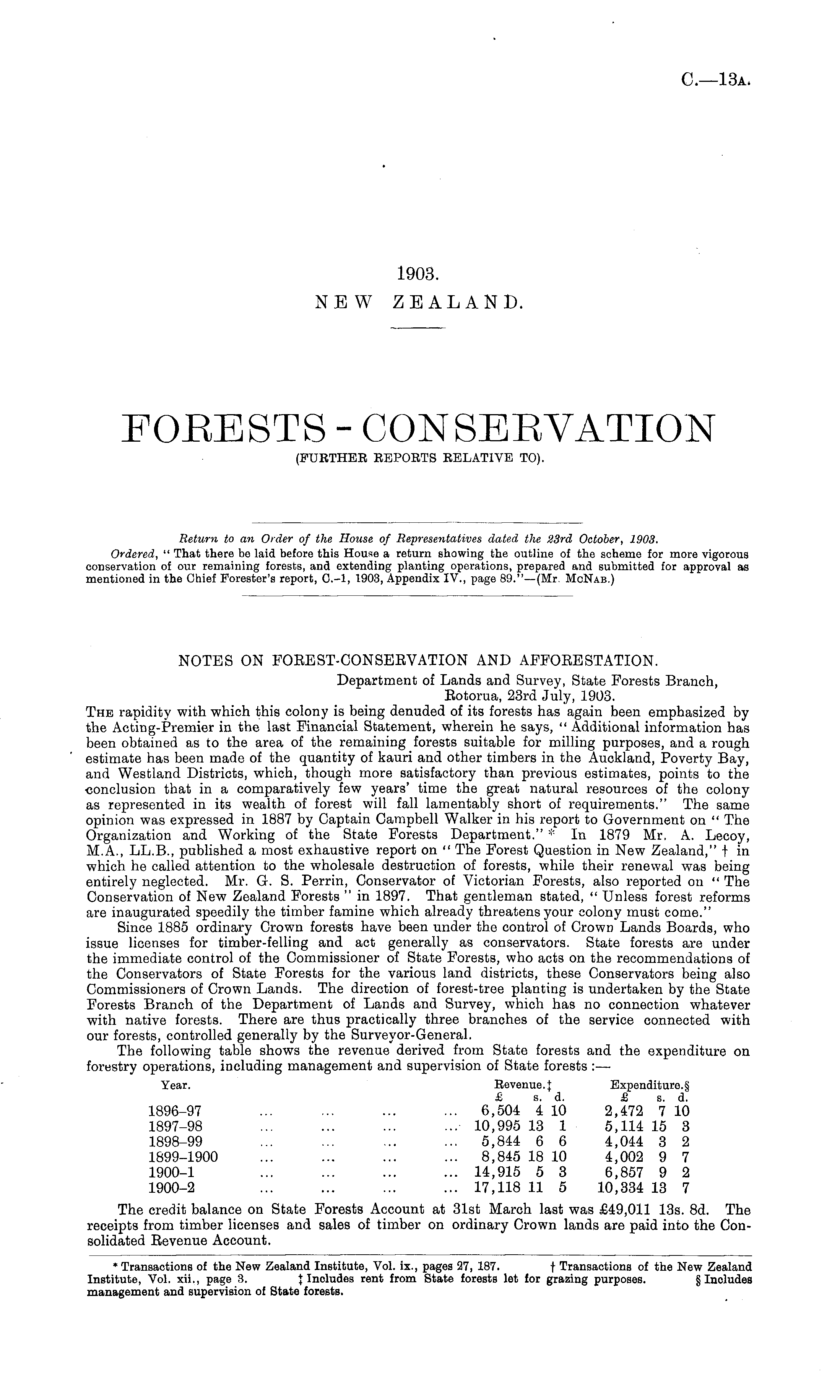 • Transactions of the New Zealand Institute, Vol. ix., pages 27, 187. t Transactions of the New Zealand Institute, Vol. xii., page 3. { Inoludes rent from State forests let for grazing purposes. § Includes management and supervision of State forests.