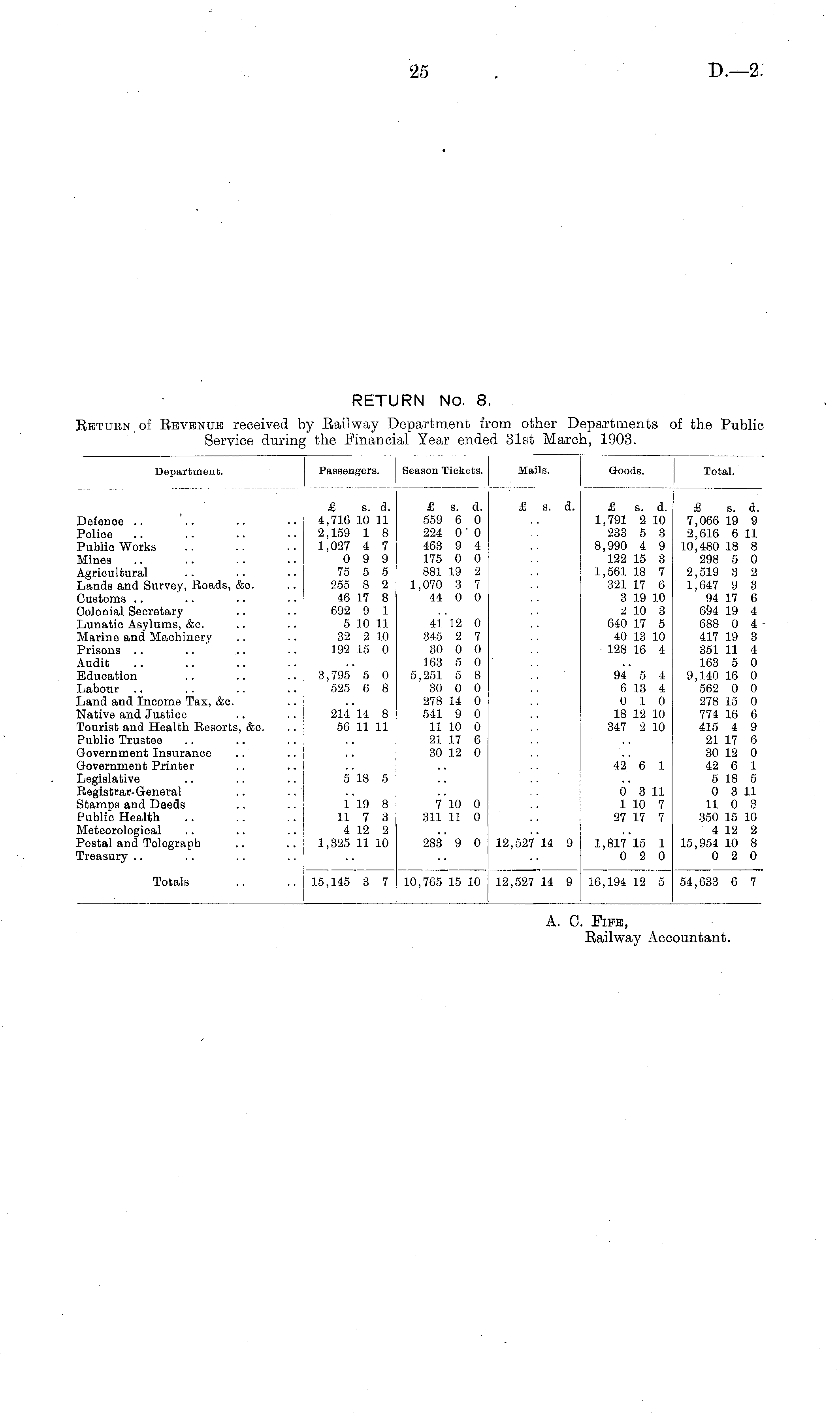 RETURN No. 8. Return of Revenue received by Railway Department from other Departments of the Public Service during the Financial Year ended 31st March, 1903.