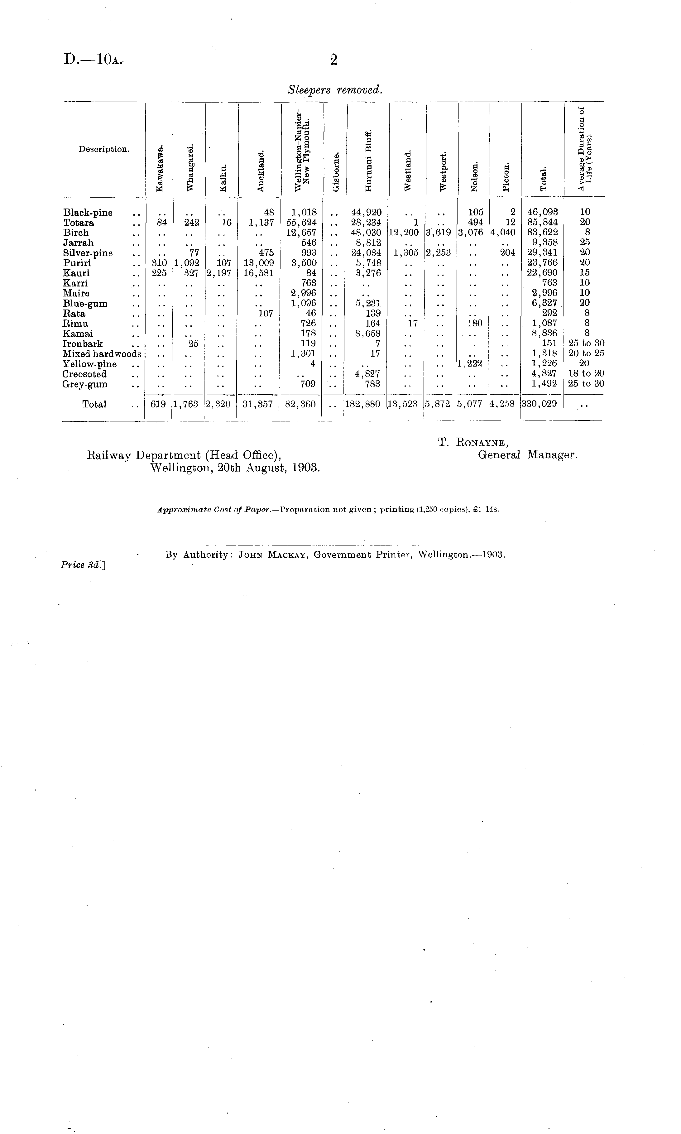 T. Ronayne, Railway Department (Head Office), General Manager. Wellington, 20th August, 1903.