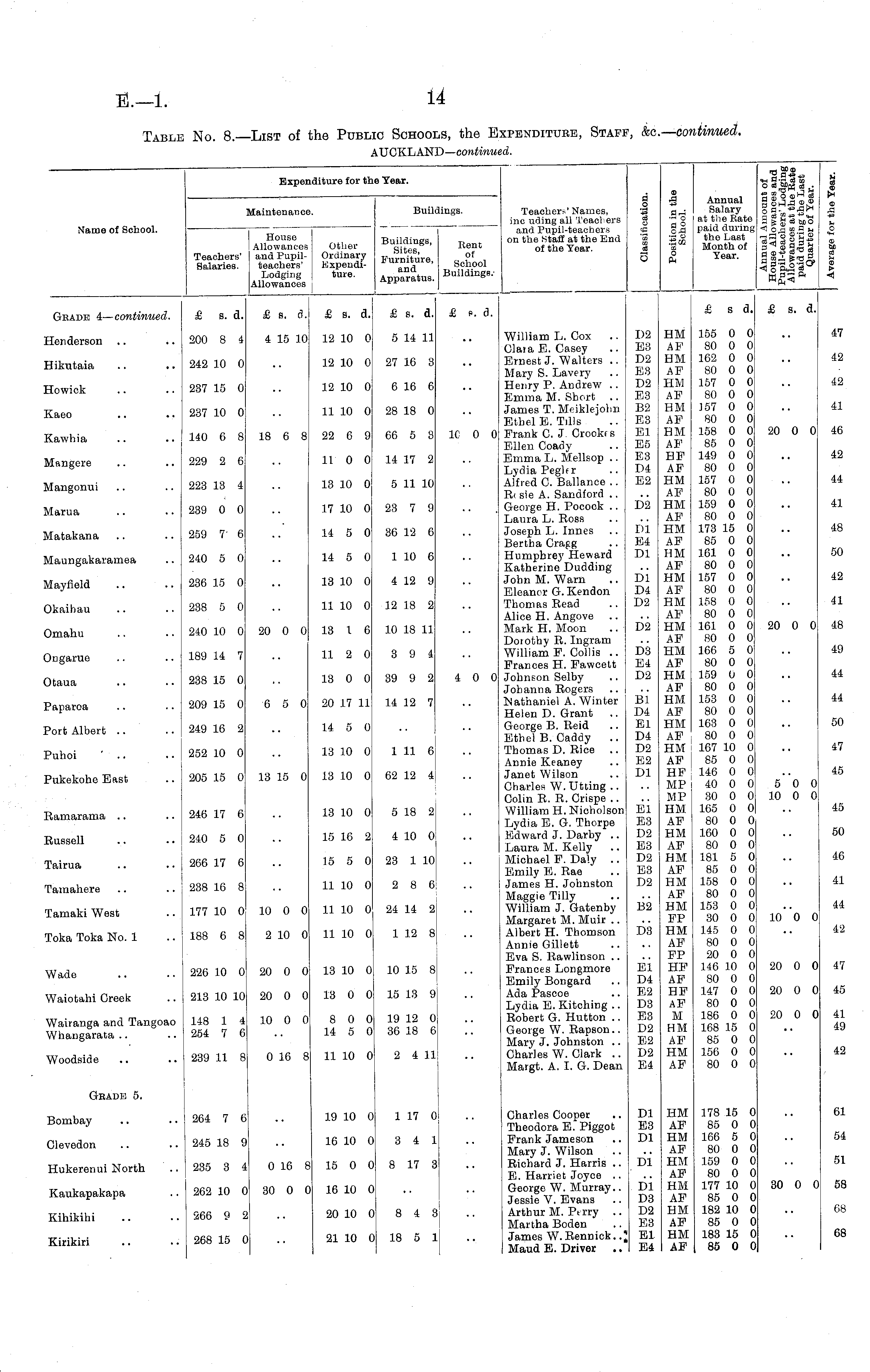 Table No. 8.-List of the Public Schools, the Expenditure, Staff, &c.— continued. AUCKLAND— continued.