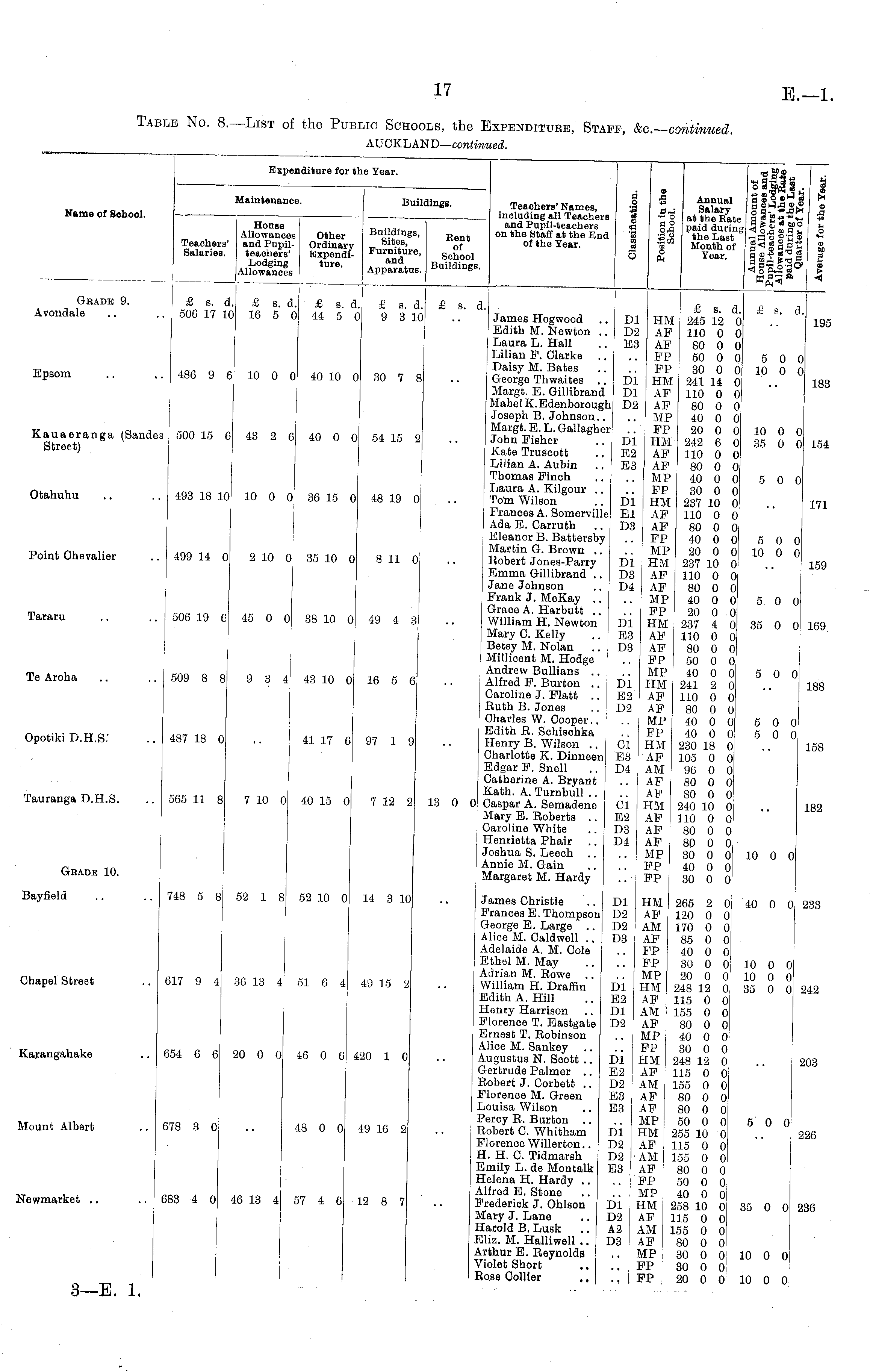 Table No. 8.—List of the Public Schools, the Expenditure, Staff, &c.—continued. AUCKLAND— continued.