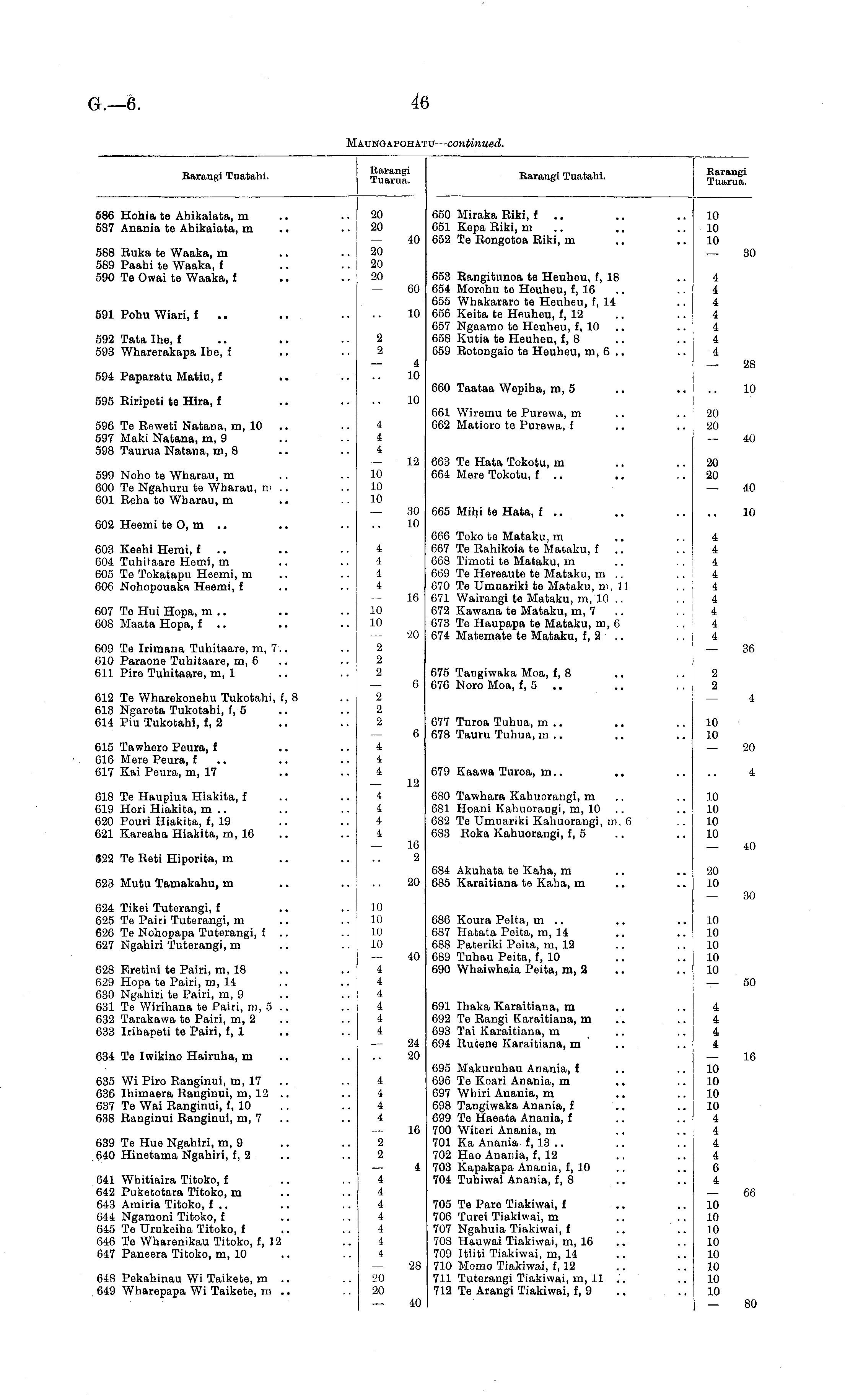 Rarangi Tuatahi, Rarangi Tuarua. Earangi Tuatahl. Rarangi Tuarua. 686 Hohia te Ahikaiata, m 587 Anania te Ahikaiata, m .. 20 20 650 Miraka Riki, f .. 651 Kepa Riki, m .. 652 Te Rongotoa Riki, m 10 10 10 588 Ruka te Waaka, m 589 Paahi te Waaka, f 590 Te Owai te Waaka, f 20 20 20 40 30 591 Pohu Wiari, t .. 60 10 653 Rangitunoa te Heuheu, f, 18 654 Morehu te Heuheu, f, 16 655 Whakararo te Heuheu, f, 14 656 Keita te Heuheu, f, 12 657 Ngaamo te Heuheu, f, 10 658 Kutia te Heuheu, f, 8 659 Rotongaio te Heuheu, m, 6 .. 4 4 4 4 4 4 4 592 Tata Ihe, f 593 Wharerakapa Ihe, f 2 2 594 Paparatu Matiu, f 4 10 28 660 Taataa Wepiha, m, 5 10 595 Riripeti te Hira, f 10 596 Te Reweti Natana, m, 10 597 Maki Natana, m, 9 598 Taurua Natana, m, 8 4 4 4 661 Wiremu te Purewa, m 662 Matioro te Purewa, f 20 20 40 599 Noho te Wharau, m 600 Te Ngahuru te Wharau, m .. 601 Reha te Wbarau, m 10 10 10 12 663 Te Hata Tokotu, m 664 Mere Tokotu, f .. 20 20 40 30 10 665 Mihi te Hata, I .. 10 602 Heemi te 0, m .. 666 Toko te Mataku, m 667 Te Rahikoia te Mataku, f .. 668 Timoti te Mataku, m 669 Te Hereaute te Mataku, m .. 670 Te Umuariki te Mataku, m, 11 671 Wairangi te Mataku, m, 10 672 Kawana te Mataku, m, 7 673 Te Haupapa te Mataku, m, 6 674 Matemate te Mataku, f, 2 4 4 4 4 4 4 4 4 4 603 Keehi Hemi, f .. 604 Tuhitaare Hemi, m 605 Te Tokatapu Heemi, m 606 Nohopouaka Heemi, £ 4 4 4 4 16 607 Te Hui Hopa, m .. 608 Maata Hopa, f .. 10 10 609 Te Irimana Tuhitaare, m, 7.. 610 Paraone Tuhitaare, m, 6 611 Pire Tuhitaare, m, 1 2 2 2 20 36 6 675 Tangiwaka Moa, f, 8 676 Noro Moa, f, 5 .. 2 2 612 Te Wharekonehu Tukotahi, f, 8 613 Ngareta Tukotahi, f, 5 614 Piu Tukotahi, £.2 2 2 2 677 Turoa Tuhua, m .. 678 Tauru Tuhua, in .. 10 10 4 6 615 Tawhero Peura, £ 616 Mere Peura, £ 617 Kai Peura, m, 17 4 4 4 679 Kaawa Turoa, m.. 20 4 618 Te Haupiua Hiakita, f 619 Hori Hiakita, m .. 620 Pouri Hiakita, f, 19 621 Kareaha Hiakita, m, 16 4 i 4 4 12 680 Tawhara Kahuorangi, m 681 Hoani Kahuorangi, m, 10 682 Te Umuariki Kahuorangi, in, 6 683 Roka Kahuorangi, f, 5 10 10 10 10 822 Te Reti Hiporita, m 16 2 40 623 Mutu Tamakahu, m 20 684 Akuhata te Kaha, m 685 Karaitiana te Kaha, m 20 10 624 Tikei Tuterangi, £ 625 Te Pain Tuterangi, m 626 Te Nohopapa Tuterangi, f .. 627 Ngahiri Tuterangi, m 10 10 10 10 30 686 Koura Peita, m .. 687 Hatata Peita, ra, 14 688 Pateriki Peita, m, 12 689 Tuhau Peita, f, 10 690 Whaiwhaia Peita, m, 2 10 10 10 10 10 40 628 Eretini te Pairi, m, 18 629 Hopa te Pairi, m, 14 630 Ngahiri te Pairi, m, 9 631 Te Wirihana te Pairi, m, 5 .. 632 Tarakawa te Pairi, m, 2 633 Irihapeti te Pairi, f, 1 4 4 4 4 4 4 691 Ihaka Karaitiana, m 692 Te Rangi Karaitiana, m 693 Tai Karaitiana, m 694 Rucene Karaitiana, m 4 4 i 4 50 634 Te Iwikino Hairuha, m 24 20 16 635 Wi Piro Ranginui, m, 17 636 Ihimaera Ranginui, m, 12 637 Te Wai Ranginui, f, 10 638 Ranginui Ranginui, m, 7 4 4 4 4 16 695 Makuruhau Anania, f 696 Te Koari Anania, m .. 697 Whiri Anania, m 698 Tangiwaka Anania, £ .. 699 Te Haeata Anania, f 700 Witeri Anania, m 701 Ka Anania f, 13 .. 702 Hao Anania, f, 12 703 Kapakapa Anania, f, 10 704 Tuhiwai Anania, f, 8 10 10 10 10 4 4 4 4 6 4 639 Te Hue Ngahiri, m, 9 640 Hinetama Ngahiri, f, 2 2 2 641 Whitiaira Titoko, £ 642 Puketotara Titoko, m 643 Amiria Titoko, £ .. 644 Ngamoni Titoko, f 645 Te Urukeiha Titoko, f 646 Te Wharenikau Titoko, f, 12 647 Paneera Titoko, m, 10 4 4 4 4 4 4 4 4 705 Te Pare Tiakiwai, f 706 Turei Tiakiwai, m 707 Ngahuia Tiakiwai, £ 708 Hauwai Tiakiwai, m, 16 709 Itiiti Tiakiwai, m, 14 710 Momo Tiakiwai, f, 12 711 Tuterangi Tiakiwai, m, 11 712 Te Arangi Tiakiwai, f, 9 10 10 10 10 10 10 10 10 66 28 648 Pekahinau Wi Taikete, m .. 649 Wharepapa Wi Taikete, m .. 20 20 40 80