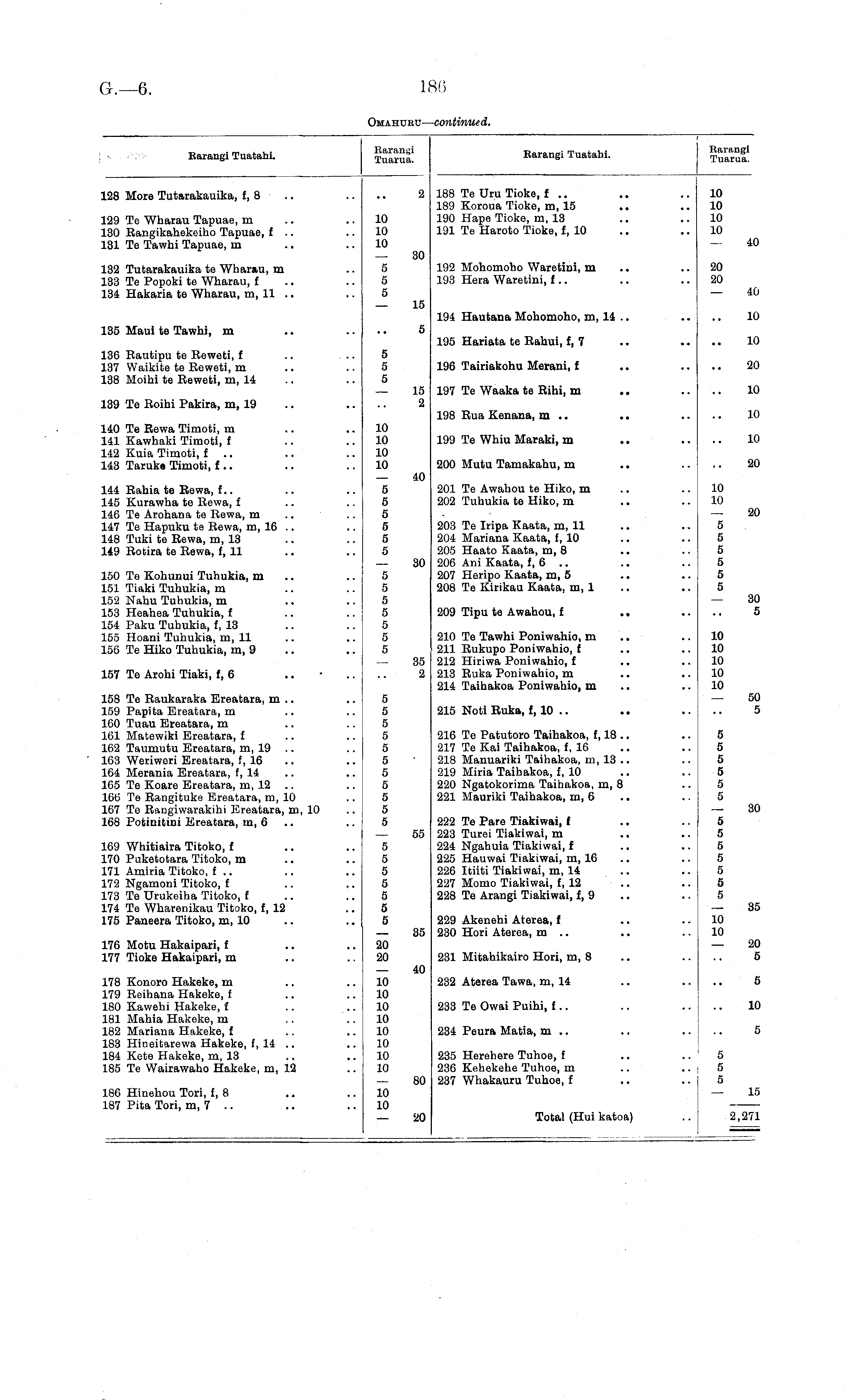 Barangi Tuatahi. Rarangi Tuarua. Barangi Tuatahi. Rarangi Tuarua. 128 More Tutarakauika, £,8 129 Te Wharau Tapuae, m 130 Rangikahekeiho Tapuae, £ .. 131 Te Tawhi Tapuae, m 10 10 10 2 188 Tβ Uru Tioke, t .. 189 Koroua Tioke, m, 15 190 Hape Tioke, m, 13 191 Te Haroto Tioke, f, 10 10 10 10 10 40 132 Tutarakauika te Wharau, m 133 Te Popoki te Wharau, £ 134 Hakaria te Wharau, m, 11 5 5 5 30 192 Mohomoho Waretini, m 193 Hera Waretini, f .. 20 20 — 40 135 Maui te Tawhi, m 15 194 Hautana Mohomoho, m, 14 .. 10 5 10 195 Hariata te Rahui, f, 7 136 Rautipu te Reweti, £ 137 Waikite te Reweti, m 138 Moihi te Reweti, m, 14 5 5 5 196 Tairiakohu Morani, f 20 15 2 197 Te Waaka te Bihi, m 10 139 Te Roihi Pakira, m, 19 198 Rua Kenana, m .. 10 140 Te Rewa Timoti, m 141 Kawhaki Timoti, f 142 Kuia Timoti, £ .. 143 Taruke Timoti, £ .. 10 10 10 10 199 Te Whiu Maraki, m 10 200 Mutu Tamakahu, m 20 40 10 10 144 Rahia te Rewa, f.. 145 Kurawha te Rewa, I 146 Te Arohana te Rewa, m 147 Te Hapuku te Rewa, m, 16 148 Tuki te Rewa, m, 13 149 Rotira te Rewa, f, 11 5 5 5 5 5 5 201 Te Awahou te Hiko, m 202 Tuhukia te Hiko, m 203 Te Iripa Kaata, m, 11 204 Mariana Kaata, f, 10 205 Haato Kaata, m, 8 206 Ani Kaata, f, 6 .. 207 Heripo Kaata, m, 5 208 Te Kirikau Kaata, m, 1 — 20 5 5 5 5 5 5 150 Te Kohunui Tuhukia, m 151 Tiaki Tuhukia, m 152 Nahu Tuhukia, m 153 Heahea Tuhukia, f 154 Paku Tuhukia, f, 13 155 Hoani Tuhukia, m, 11 156 Te Hiko Tuhukia, m, 9 5 5 5 5 5 5 5 30 209 Tipu te Awahou, £ — 30 5 35 2 210 Te Tawhi Poniwahio, m 211 Rukupo Poniwahio, £ 212 Hiriwa Poniwahio, £ 213 Ruka Poniwahio, m 214 Taihakoa Poniwahio, m 10 10 10 10 10 157 Te Arohi Tiaki, f, 6 158 Te Raukaraka Ereatara, m .. 159 Papita Ereatara, m 160 Tuau Ereatara, m 161 Matewiki Ereatara, f 162 Taumutu Ereatara, m, 19 163 Weriweri Ereatara, f, 16 164 Merania Ereatara, f, 14 165 Te Koare Ereatara, m, 12 .. 166 Te Rangituke Ereatara, m, 10 167 Te Rangiwarakihi Ereatara, m, 10 168 I 'otinitini Ereatara, m, 6 5 5 5 5 5 5 5 5 5 5 5 215 NotiRuka, f, 10 .. 216 Te Patutoro Taihakoa, f, 18 .. 217 Te Kai Taihakoa, £, 16 218 Manuariki Taihakoa, m, 13 .. 219 Miria Taihakoa, f, 10 220 Ngatokorima Taihakoa, m, 8 221 Mauriki Taihakoa, in, G — 50 5 5 5 5 5 5 5 169 Whitiaira Titoko, £ 170 Puketotara Titoko, m 171 Amiria Titoko, f .. 172 Ngamoni Titoko, t 173 Te Urukeiha Titoko, f 174 Te Wharenikau Titoko, f, 12 175 Paneera Titoko, m, 10 5 5 5 5 5 5 5 55 222 Te Pare Tiakiwai, f 223 Turei Tiakiwai, m 224 Ngahuia Tiakiwai, f 225 Hauwai Tiakiwai, m, 16 226 Itiiti Tiakiwai, m, 11 227 Momo Tiakiwai, f, 12 228 Te Arangi Tiakiwai, f, 9 — 30 5 5 5 5 5 5 5 229 Akenehi Aterea, £ 230 Hori Aterea, m .. — 35 10 10 176 Motu Hakaipari, f 177 Tioke Hakaipari, m 20 20 35 — 20 5 231 Mitahikairo Hori, m, 8 40 5 178 Konoro Hakeke, m 179 Reihana Hakeke, f 180 Kawehi Hakeke, i 181 Mahia Hakeke, m 182 Mariana Hakeke, £ 183 Hineitarewa Hakeke, f, 14 184 Kete Hakeke, m, 13 185 Te Wairawaho Hakeke, m, 12 10 10 10 10 10 10 10 10 232 Aterea Tawa, m, 14 233 Te Owai Puihi, £.. 10 234 Peura Matia, m .. 5 235 Herehere Tuhoe, f 236 Kehekehe Tuhoe, m 237 Whakauru Tuhoe, f 5 5 5 186 Hinehou Tori, £,8 187 Pita Tori, m, 7 .. 10 10 80 — 15 20 Total (Hui katoa) 2,271