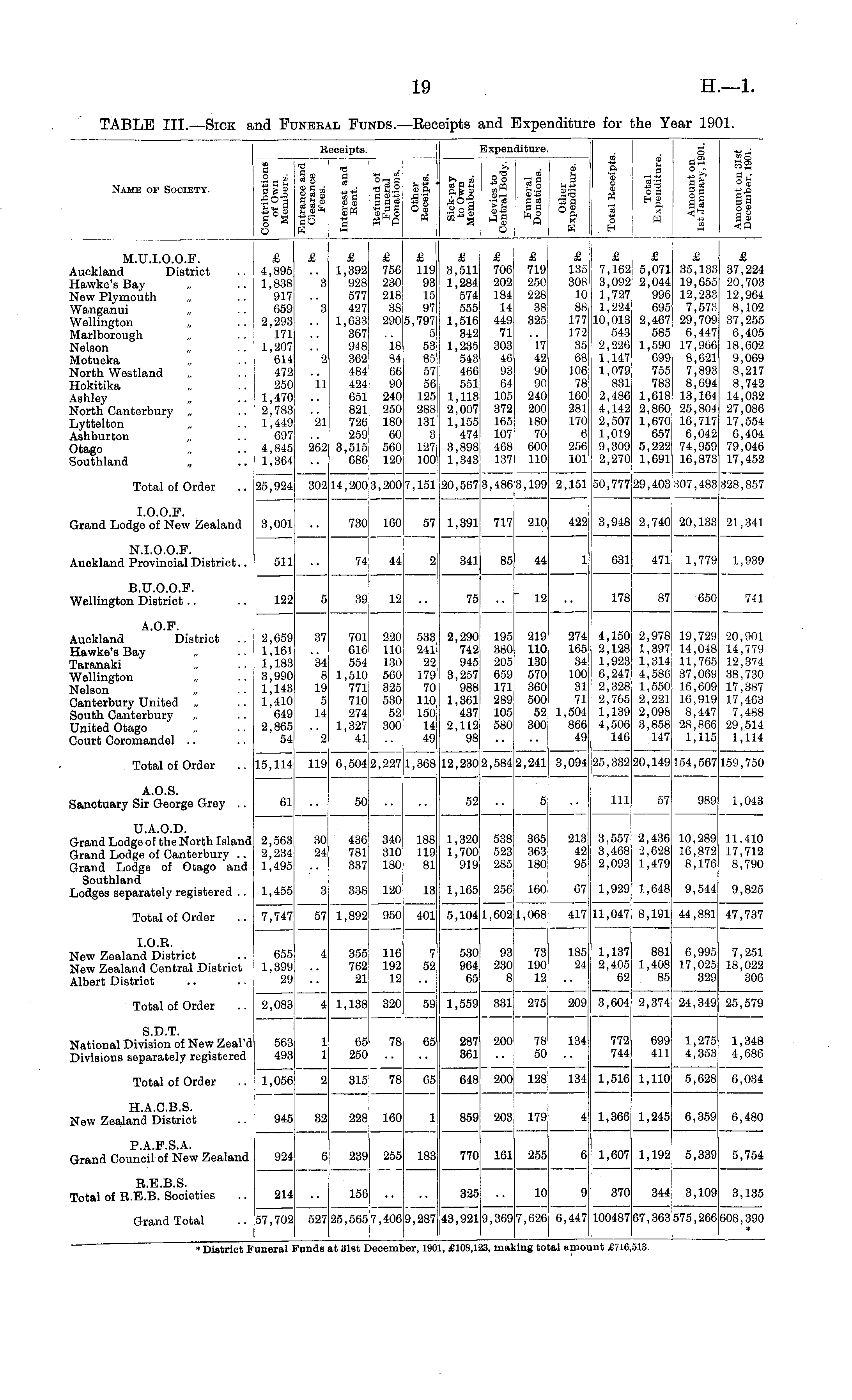 TABLE III.—Sick and Funeral Funds. —Receipts and Expenditure for the Year 1901.