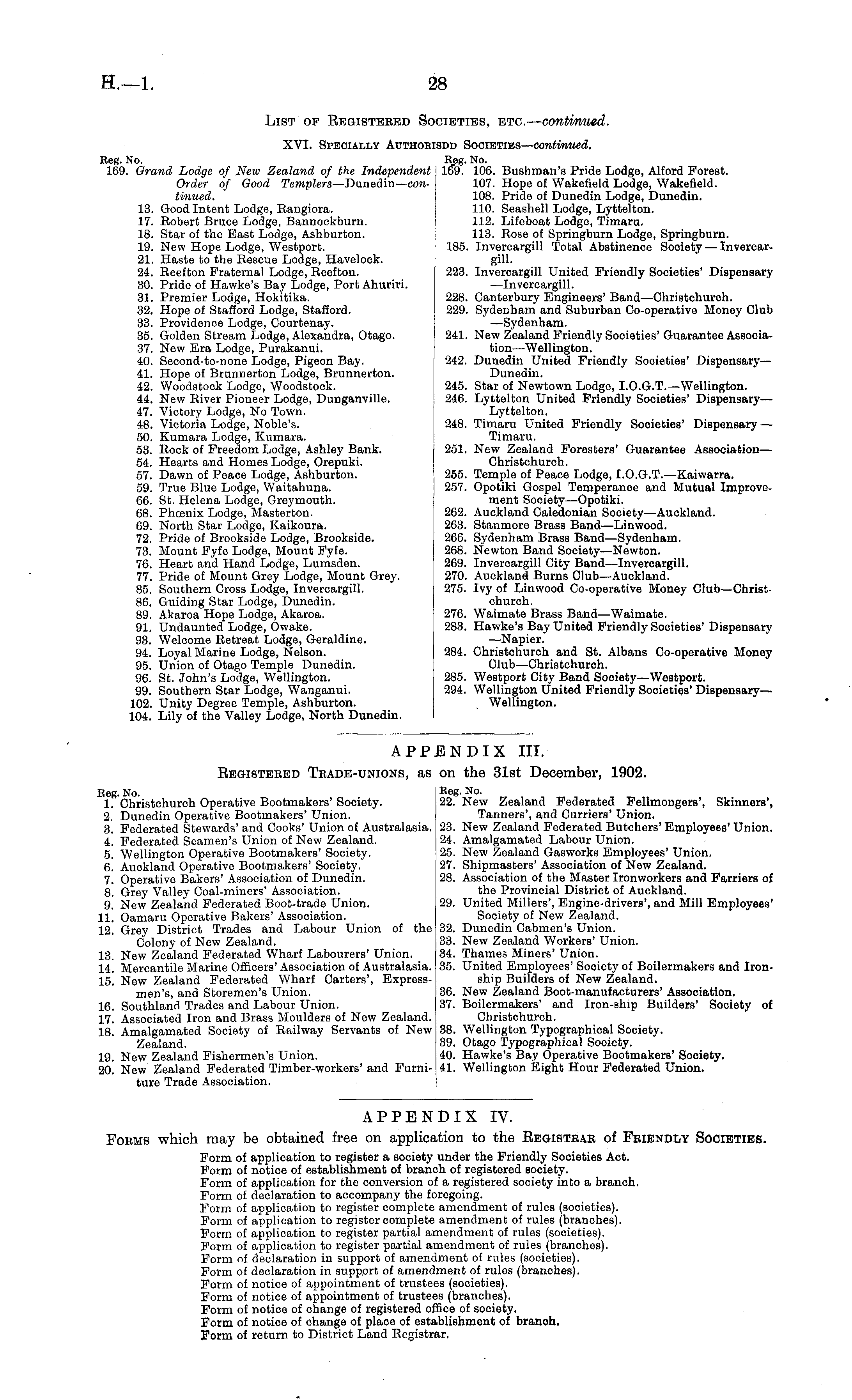 APPENDIX IV. Forms which may be obtained free on application to the Registrar of Friendly Societies. Form of application to register a society under the Friendly Societies Act. Form of notice of establishment of branch of registered society. Form of application for the conversion of a registered society into a branch. Form of declaration to accompany the foregoing. Form of application to register complete amendment of rules (societies). Form of application to register complete amendment of rules (branches). Form of application to register partial amendment of rules (societies). Form of application to register partial amendment of rules (branches). Form of declaration in support of amendment of rules (societies). Form of declaration in support of amendment of rules (branches). Form of notice of appointment of trustees (societies). Form of notice of appointment of trustees (branches). Form of notice of change of registered office of society. Form of notice of change of place of establishment of branoh. Form of return to District Land Registrar.