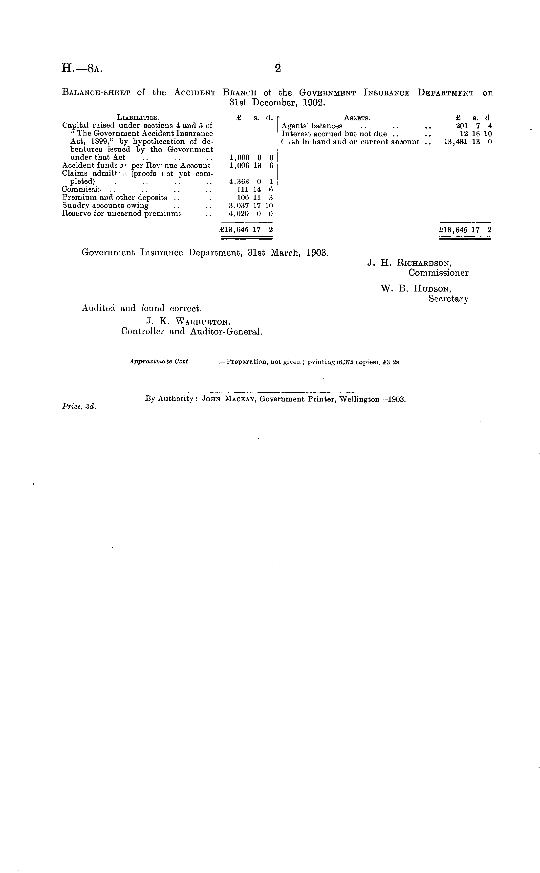 By Authority : John Mackay, Government Printer, Wellington—l9o3. Price, 3d.