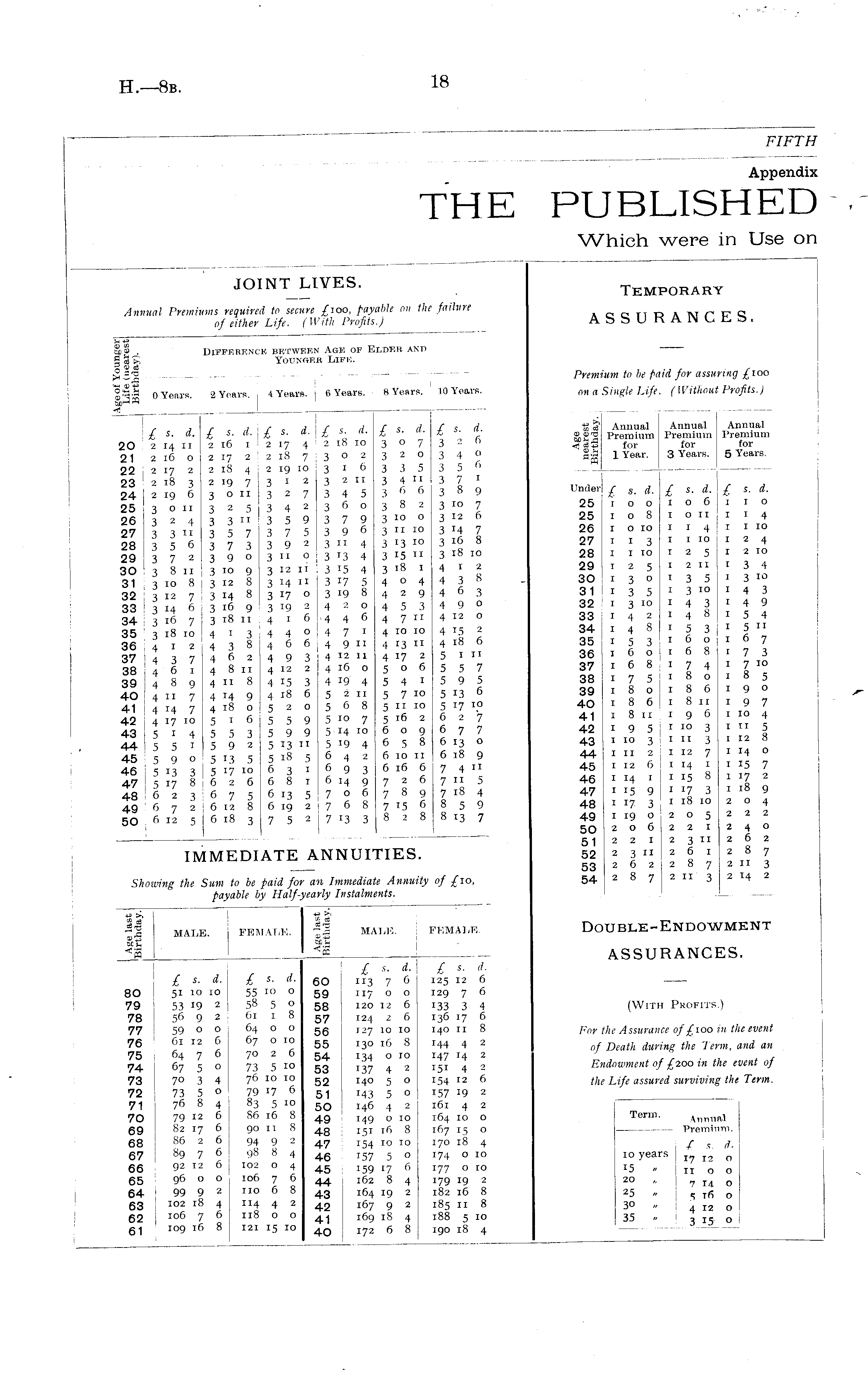 Appendix No. 1-continued. THE PUBLISHED TABLES OF PREMIUMS