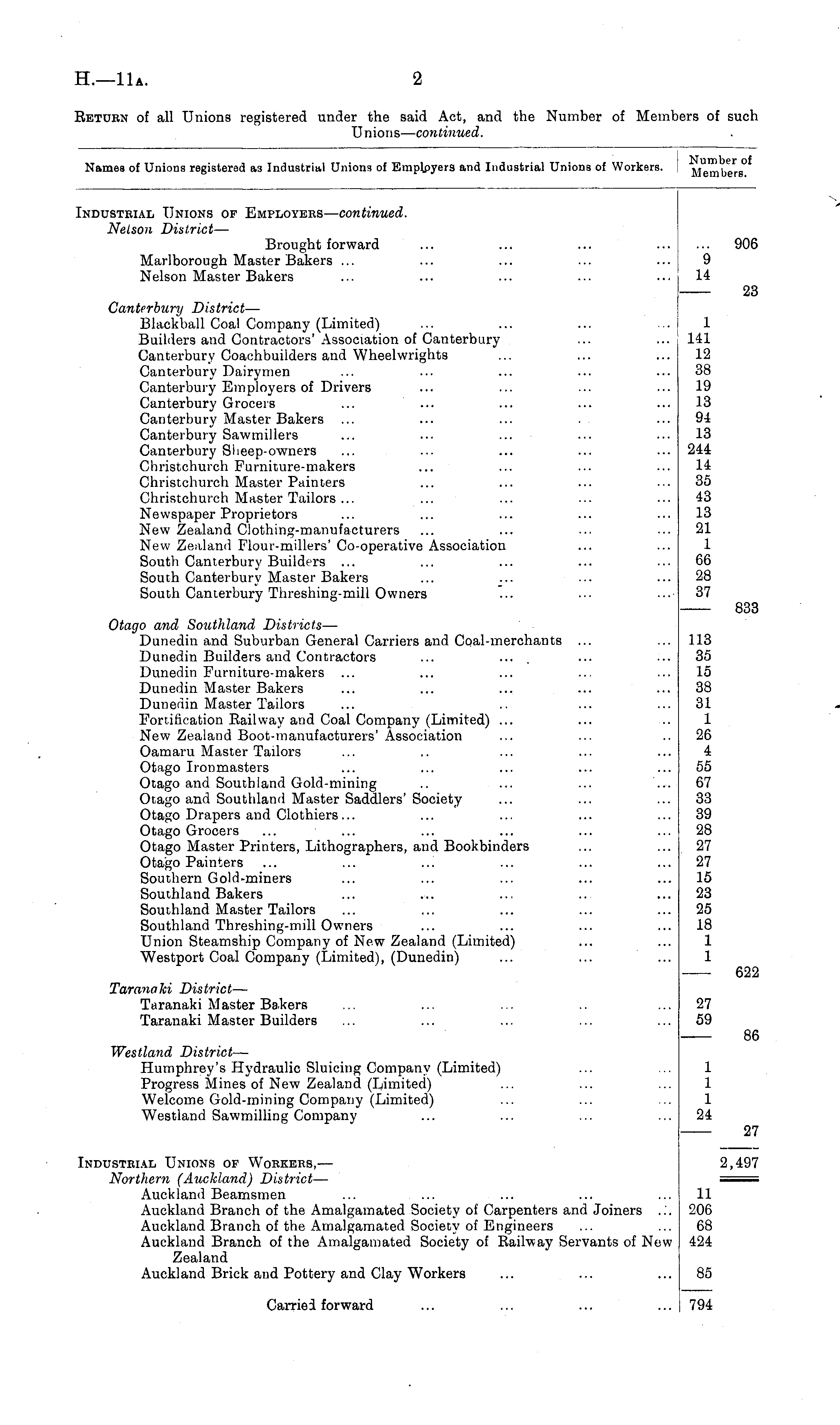 Names of Unions registered a3 Industrial Unions of Employers and Industrial Unions of Workers. Number of Members. Industrial Unions of Employers— continued. Nelson District — Brought forward Marlborough Master Bakers ... Nelson Master Bakers 9 14 906 Canterbury District — Blackball Coal Company (Limited) Builders and Contractors' Association of Canterbury Canterbury Coachbuilders and Wheelwrights Canterbury Dairymen Canterbury Employers of Drivers Canterbury Grocers Canterbury Master Bakers Canterbury Sawmillers Canterbury Sheep-owners Christchurch Furniture-makers Christchurch Master Painters Christchurch Master Tailors ... Newspaper Proprietors New Zealand Clothing-manufacturers New Zealand Flour-millers' Co-operative Association South Canterbury Builders ... South Canterbury Master Bakers South Canterbury Threshing-mill Owners 23 1 141 12 38 19 13 94 13 244 14 35 43 13 21 1 66 28 37 Otago and Southland Districts — Dunedin and Suburban General Carriers and Coal-merchants ... Dunedin Builders and Contractors ... ... Dunedin Furniture-makers ... Dunedin Master Bakers Dunedin Master Tailors Fortification Railway and Coal Company (Limited) ... New Zealand Boot-manufacturers' Association Oamaru Master Tailors Otago Ironmasters Otago and Southland Gold-mining Otago and Southland Master Saddlers' Society Otago Drapers and Clothiers... Otago Grocers Otago Master Printers, Lithographers, and Bookbinders Otago Painters Southern Gold-miners Southland Bakers Southland Master Tailors Southland Threshing-mill Owners Union Steamship Company of New Zealand (Limited) Westport Coal Company (Limited), (Dunedin) 833 113 35 15 38 31 1 26 4 55 67 33 39 28 27 27 15 23 25 18 1 1 Taranaki District — Taranaki Master Bakers Taranaki Master Builders 622 27 59 Westland District — Humphrey's Hydraulic Sluicing Company (Limited) Progress Mines of New Zealand (Limited) Welcome Gold-mining Company (Limited) Westland Sawmilling Company 86 1 1 1 24 27 Industrial Unions of W t orkers, — Northern (Auckland) District — Auckland Beamsmen Auckland Branch of the Amalgamated Society of Carpenters and Joiners .:. Auckland Branch of the Amalgamated Society of Engineers Auckland Branch of the Amalgamated Society of Railway Servants of New Zealand Auckland Brick and Pottery and Clay Workers 11 206 68 424 2,497 85 Carried forward 794