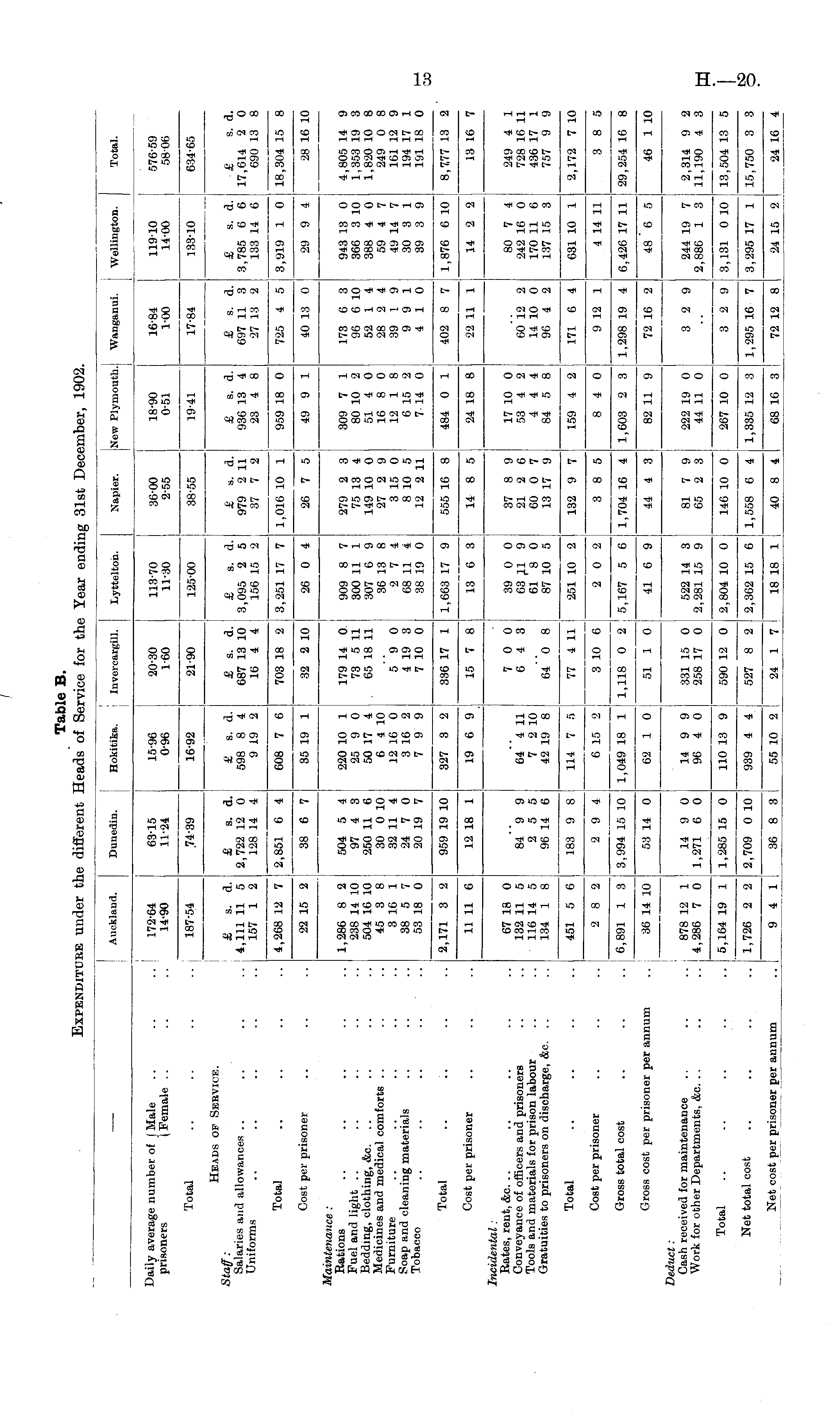 Table B. Expenditure under the different Heads of Service for the Year ending 31st December, 1902.