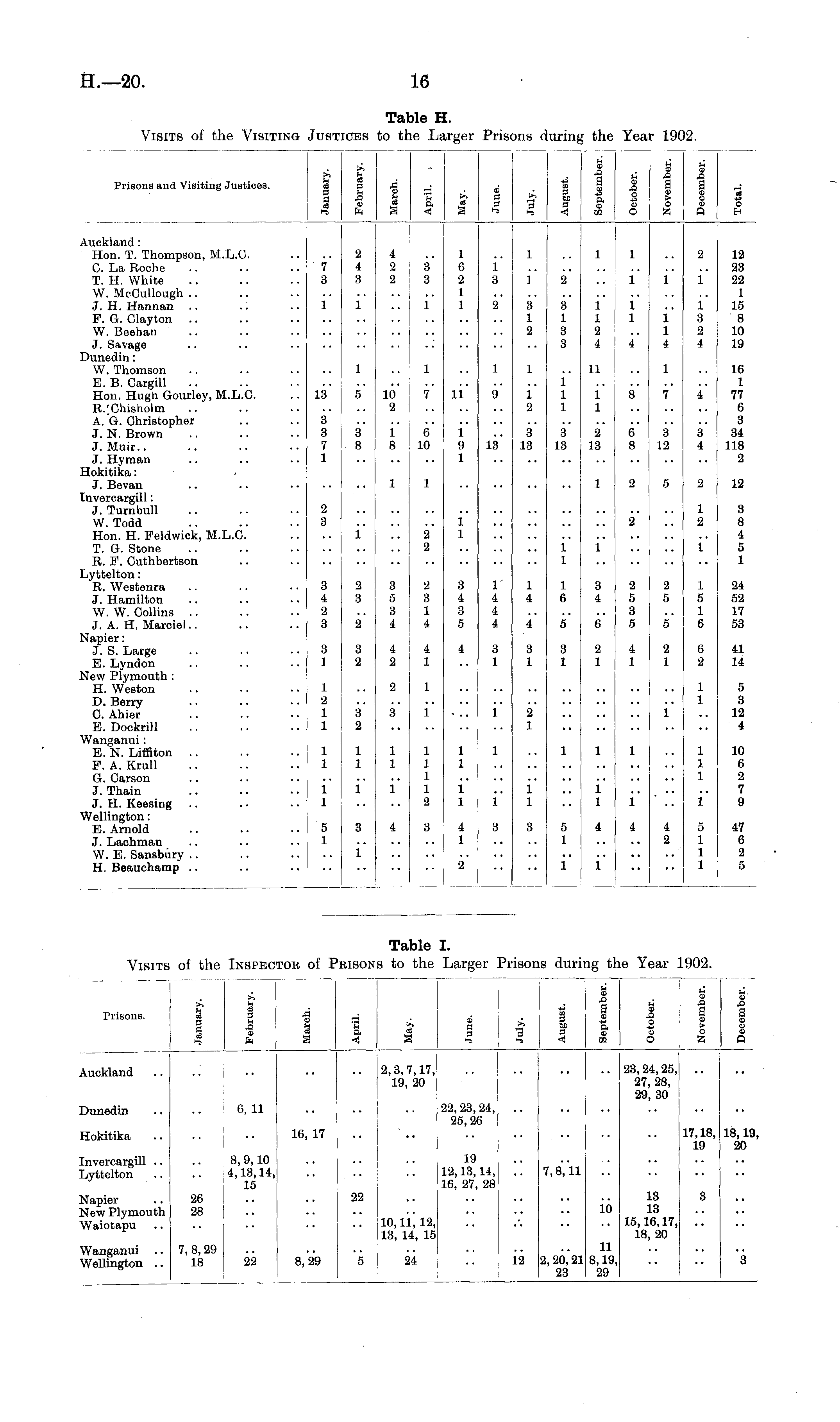 Table H. Visits of the Visiting Justices to the Larger Prisons during the Year 1902.