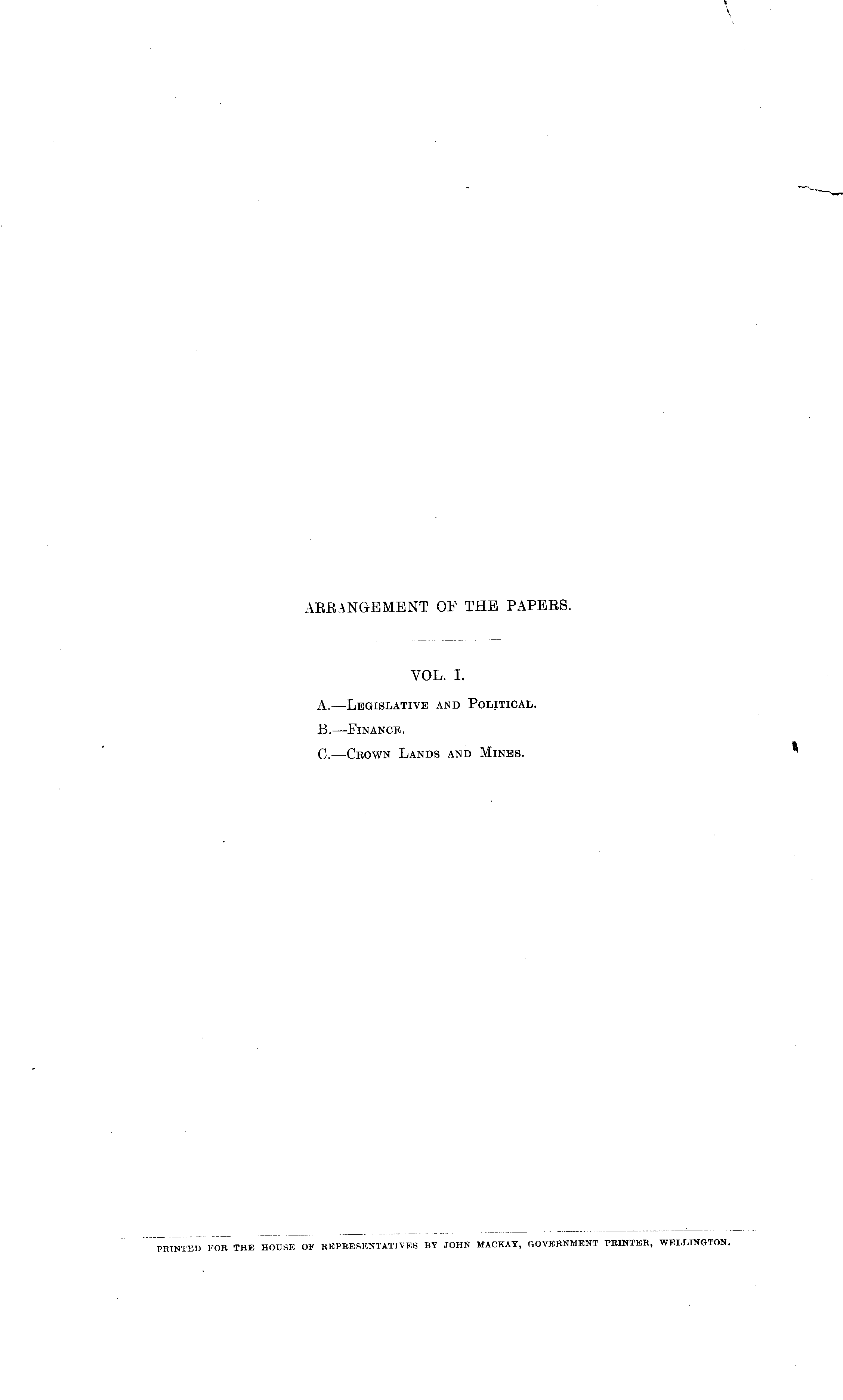 VOL. I. A.—Legislative and Political. B.—Finance. C.—Crown Lands and Mines.