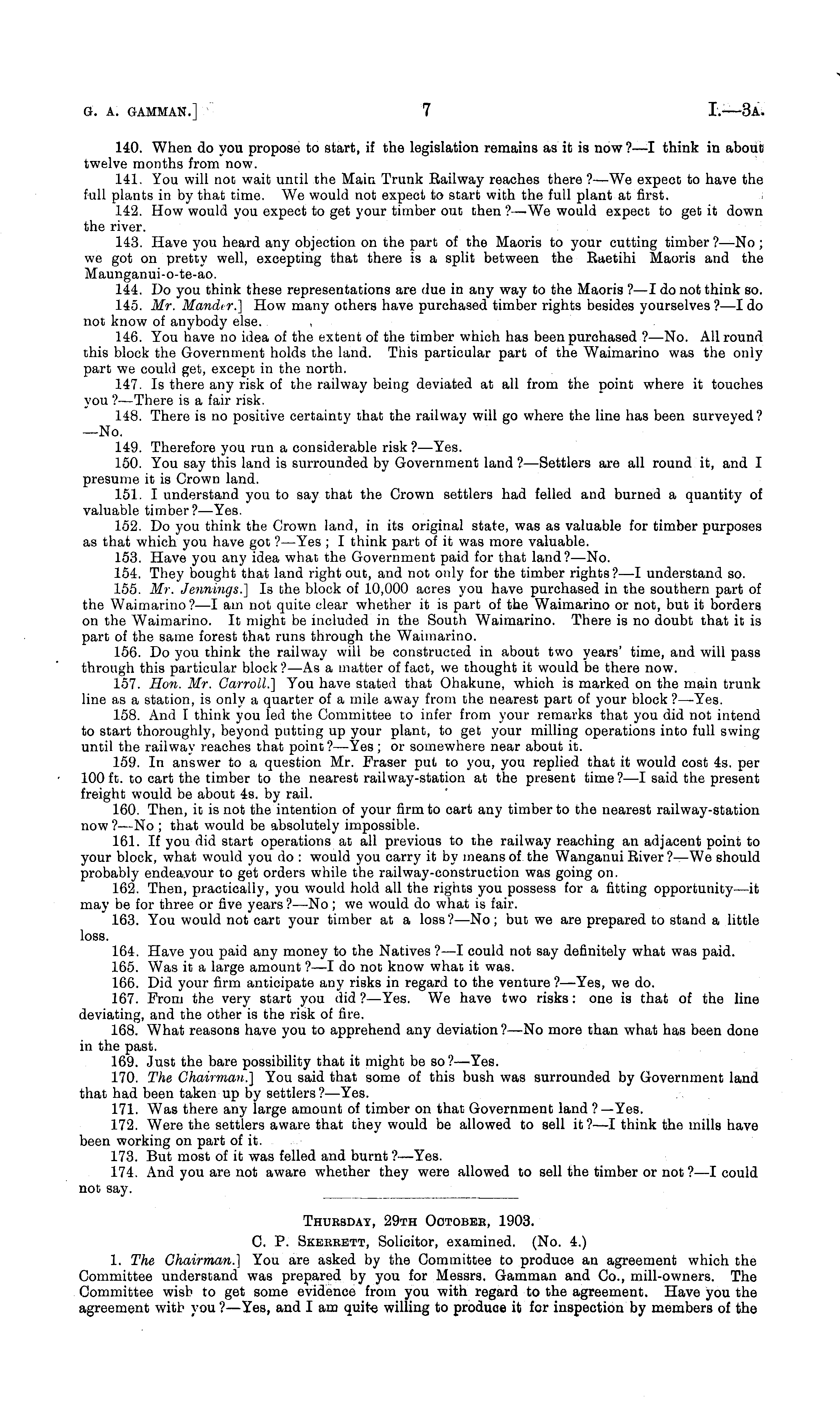 Thursday, 29th October, 1903. C. P. Skerrett, Solicitor, examined. (No. 4.) 1. The Chairman.] You are asked by the Committee to produce an agreement which the Committee understand was prepared by you for Messrs. Gamman and Co., mill-owners. The Committee wish to get some evidence from you with regard to the agreement. Have you the agreement with you ? —Yes, and I am quite willing to produce it for inspection by members of the