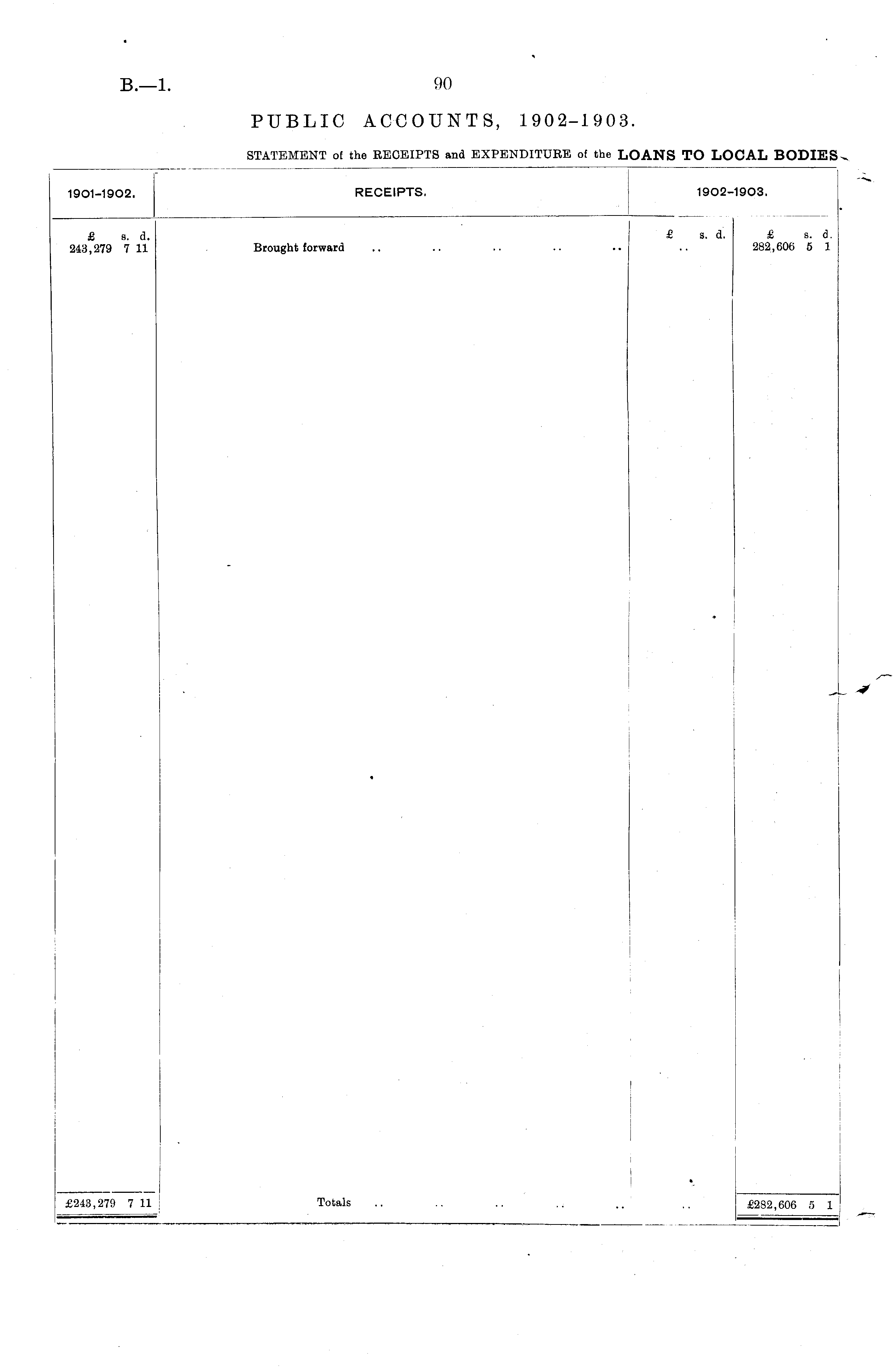 1901-1902. RECEIPTS, 1902 ■1903. £ s. d. 243,279 7 11 Brought forward £ s £ s. d. S. I £ s. d. 282,606 5 1 ■ T) 1243,279 7 11 Totals £282,606 5